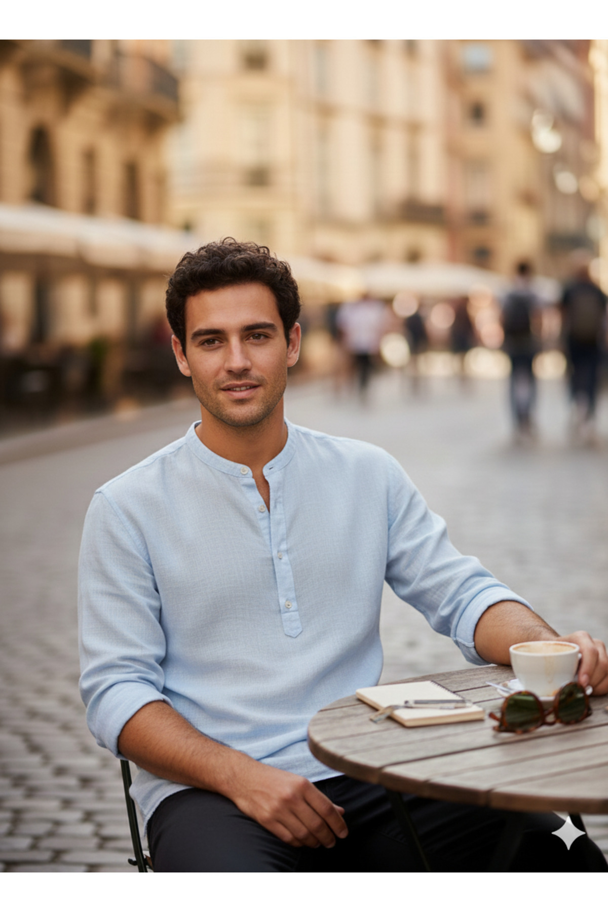 erkek hakim yaka yarım düğmeli gömlek erkek hakim yaka yarım düğmeli gömlek 0038 M