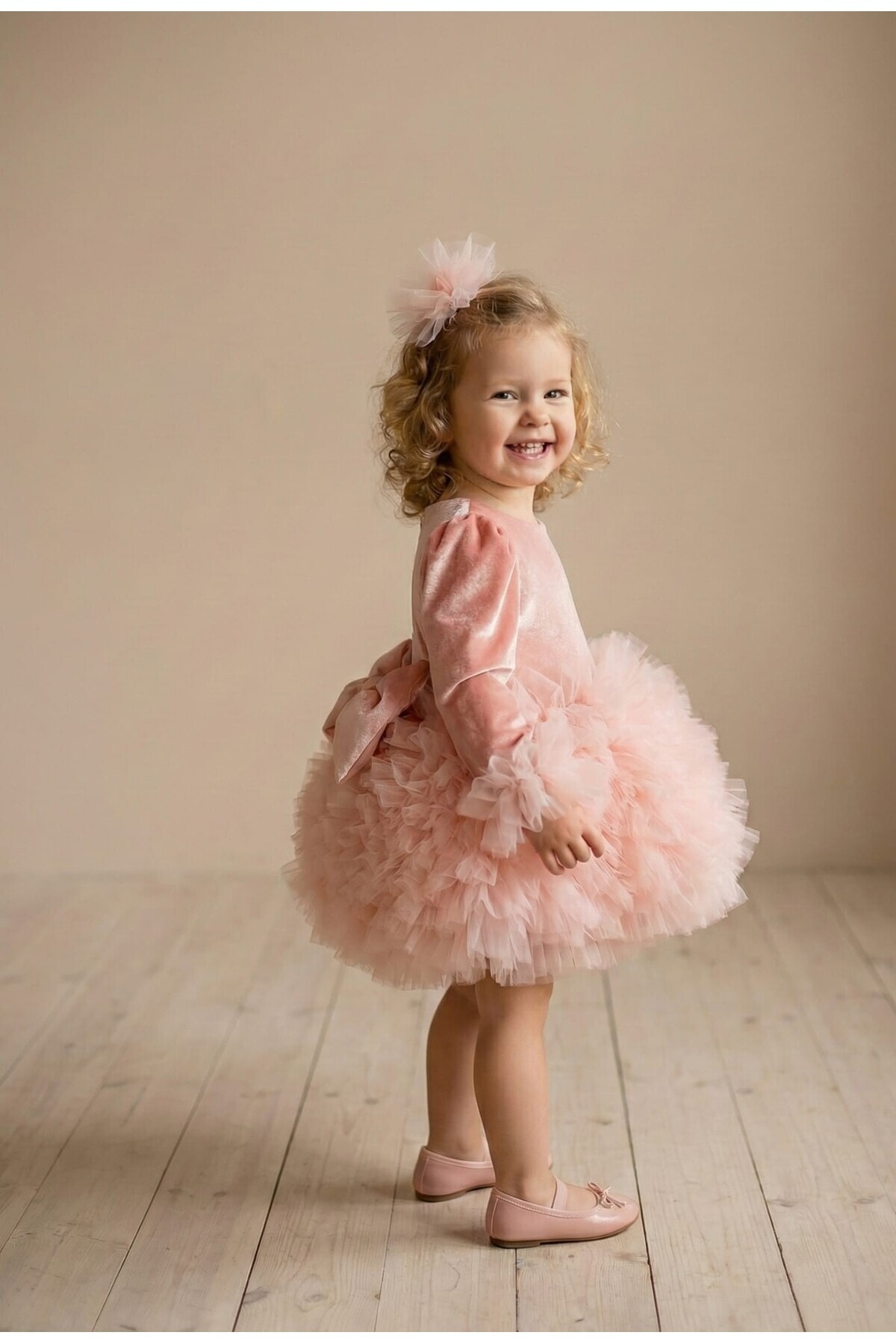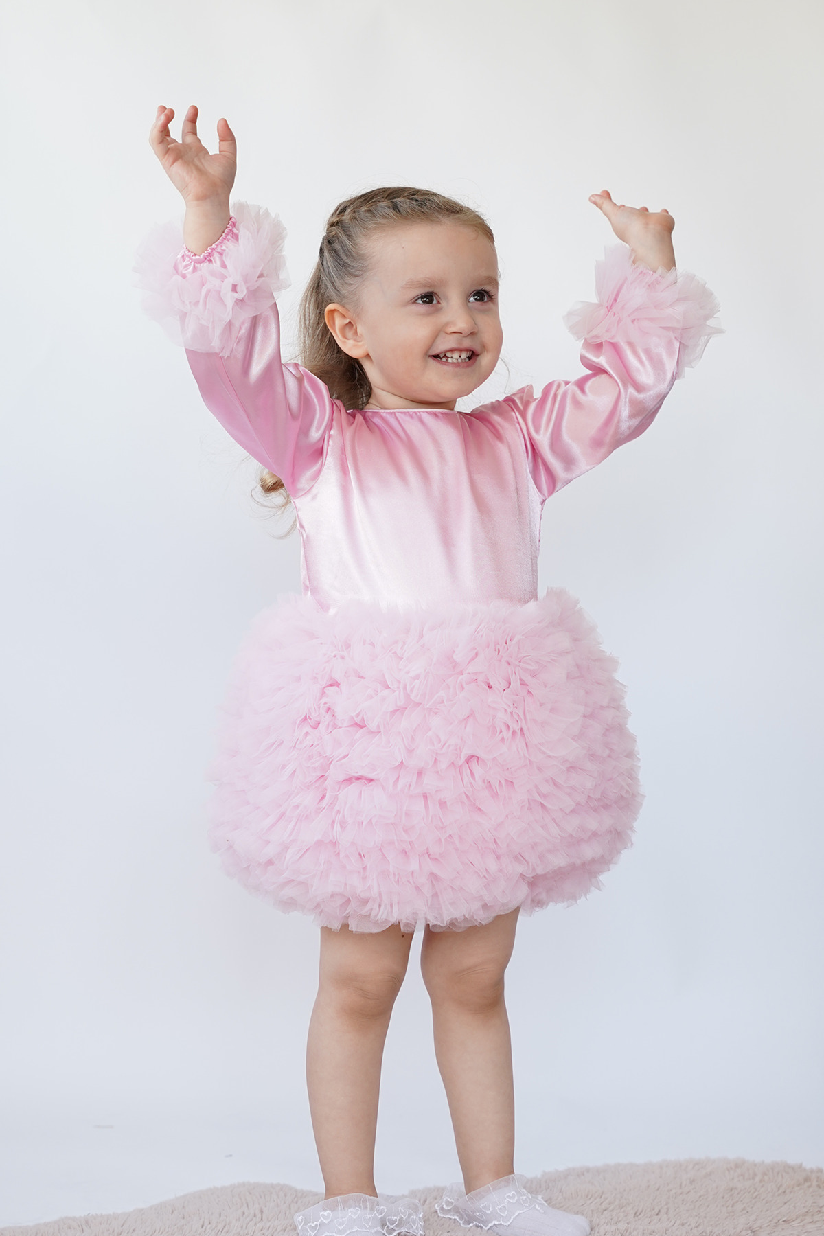 Pembe Kadife Kumaş Uzun Kollu Tütülü Kız Bebek Elbise - Velvet Pembe Kadife Kumaş Uzun Kollu Tütülü Kız Bebek Elbise - Velvet kadifetütü 3 Yaş