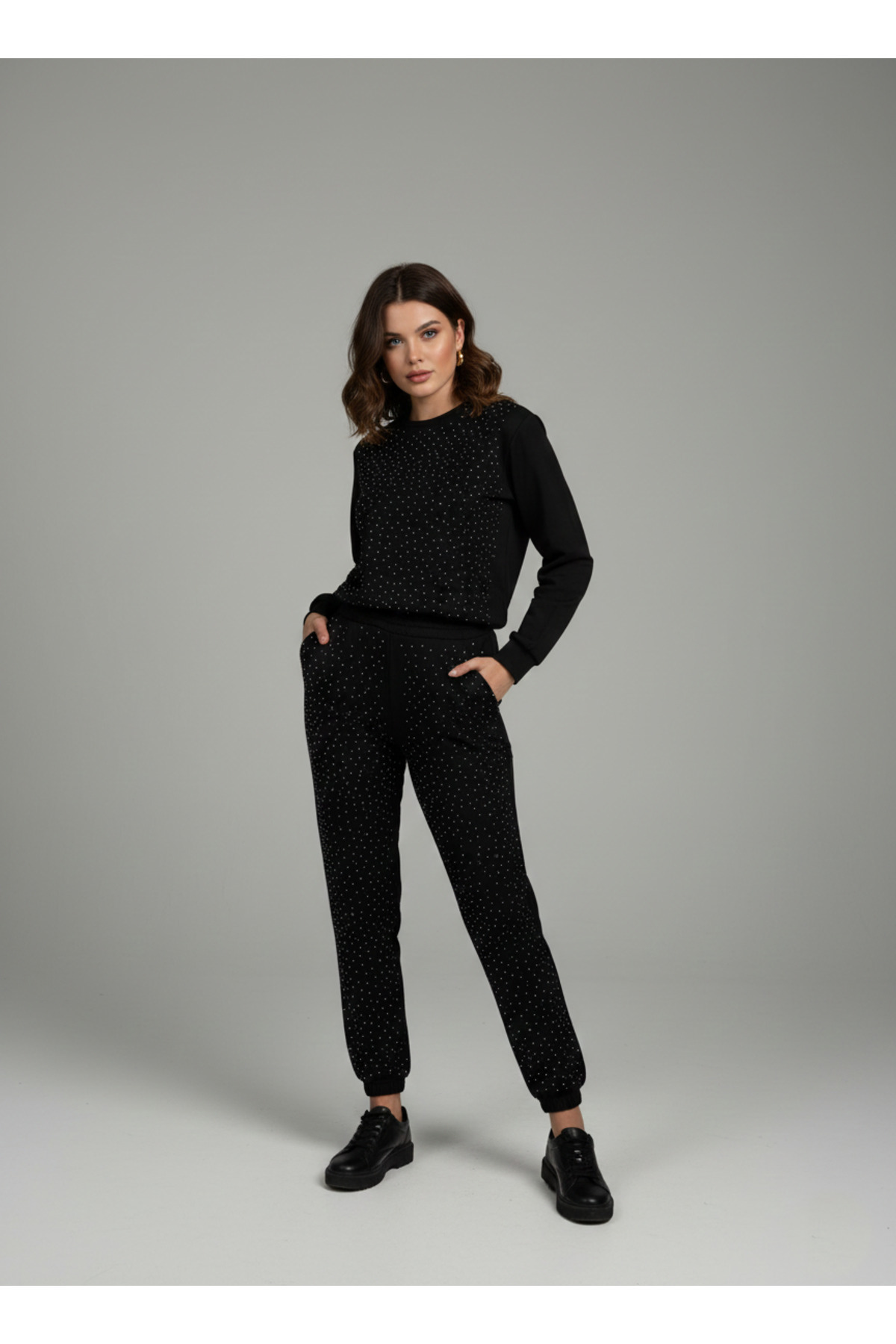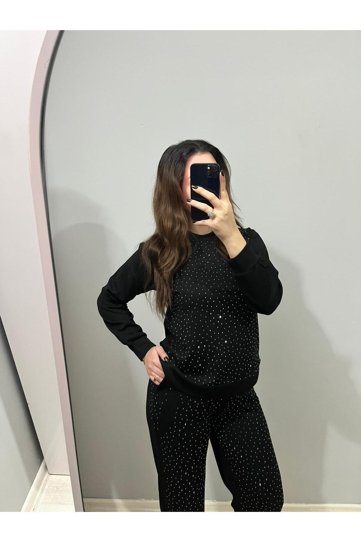 Siyah Crystal Taş Detaylı Şık Tasarım Kadın Eşofman Takımı Siyah Crystal Taş Detaylı Şık Tasarım Kadın Eşofman Takımı Stilnika1 XL