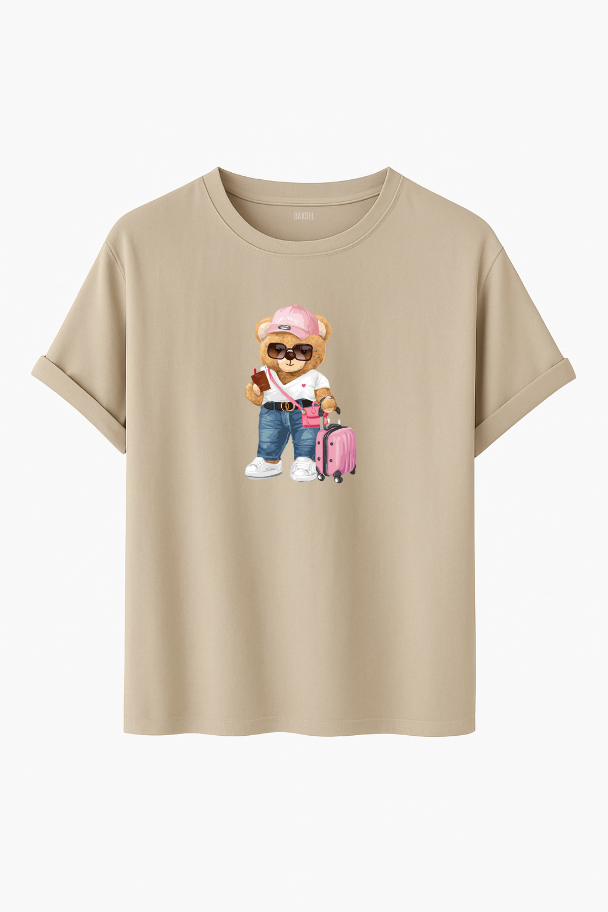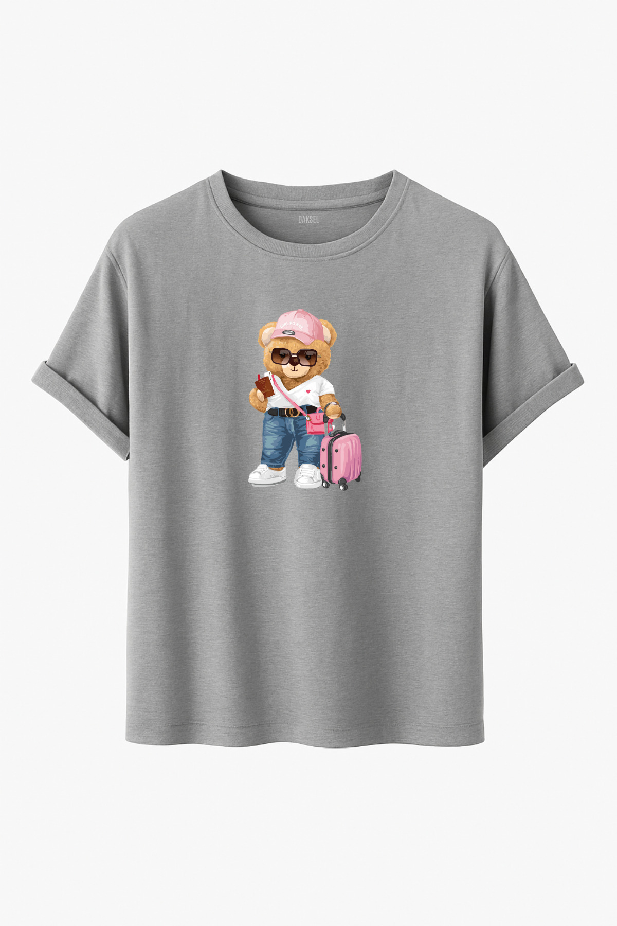 Tatil Konseptli Valizli Cool Ayıcık Desenli T-shirt Tatil Konseptli Valizli Cool Ayıcık Desenli T-shirt DKSB0140 2XL
