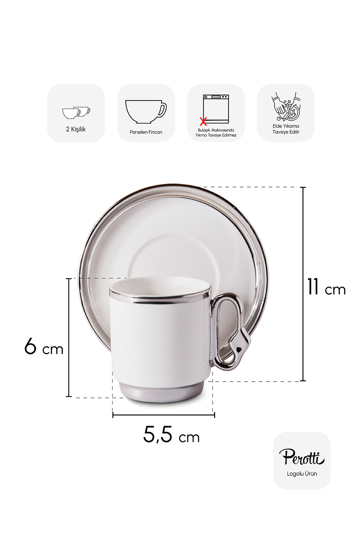 Cihangir Silver 2 Kişilik Porselen Kahve Fincanı Takımı Cihangir Silver 2 Kişilik Porselen Kahve Fincanı Takımı 1301040032 تک سایز