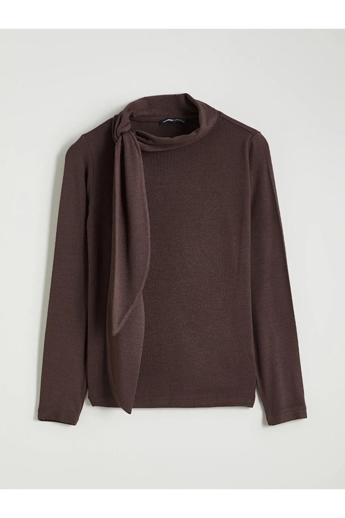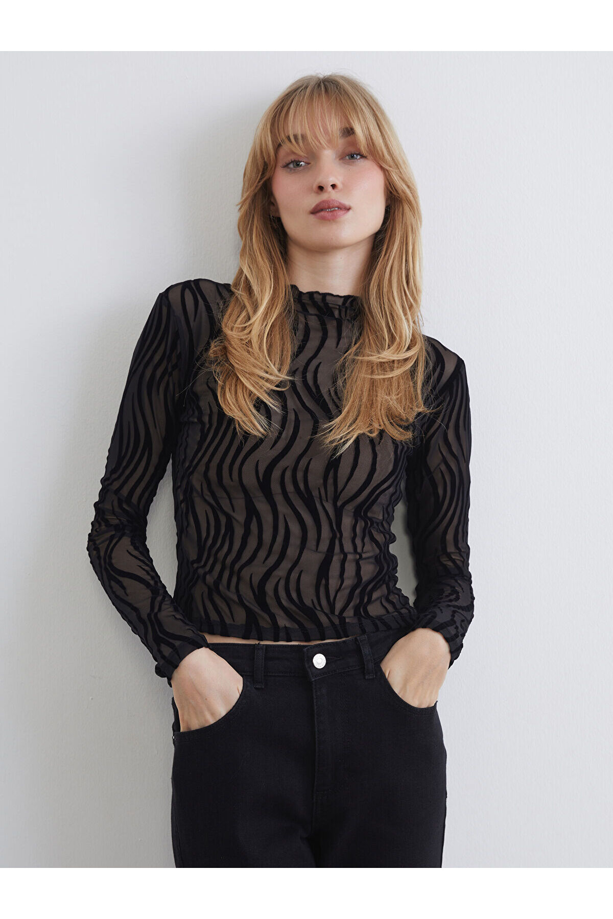 Dik Yaka Desenli Transparan Bluz Dik Yaka Desenli Transparan Bluz 5136036 XL