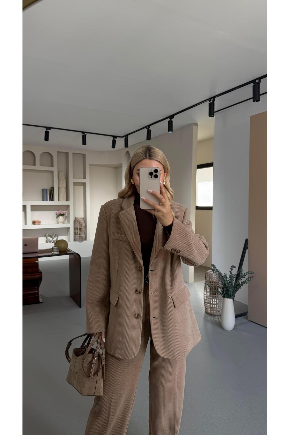Bisiklet Yaka Kadın Tüvit Ceket Bisiklet Yaka Kadın Tüvit Ceket 5186049 XL