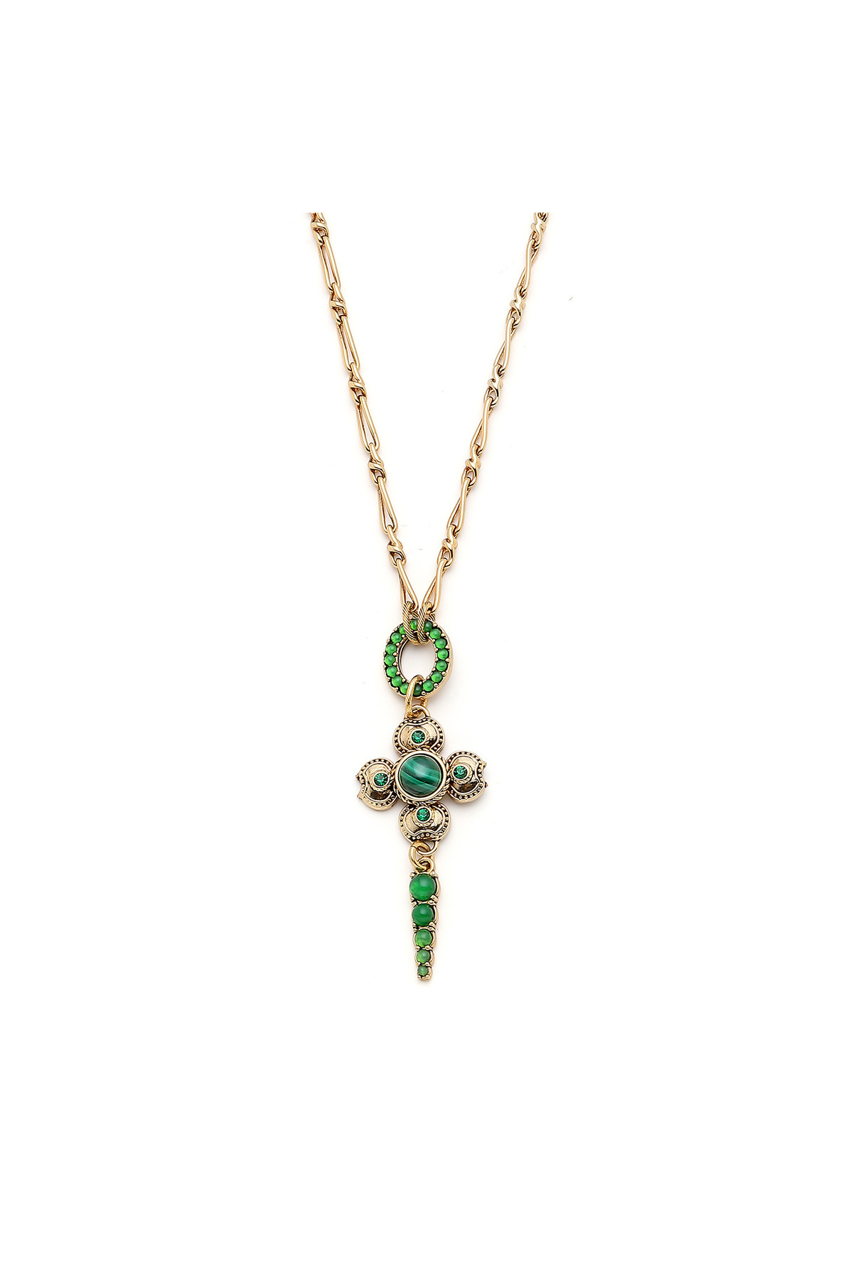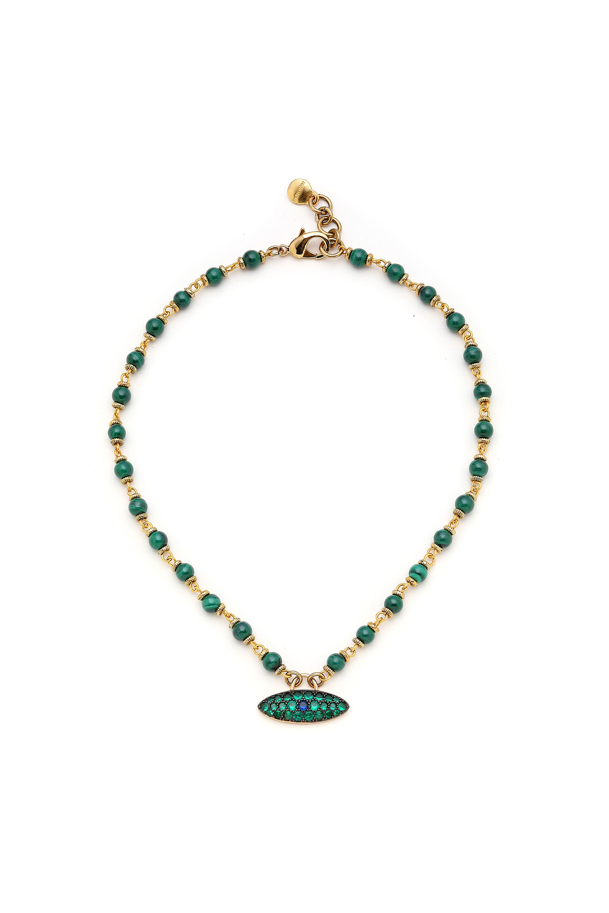 Lucky Point Malahit Doğaltaş Yonca Charm Altın Kaplama Zincir Kolye Lucky Point Malahit Doğaltaş Yonca Charm Altın Kaplama Zincir Kolye NMR26K036 تک سایز