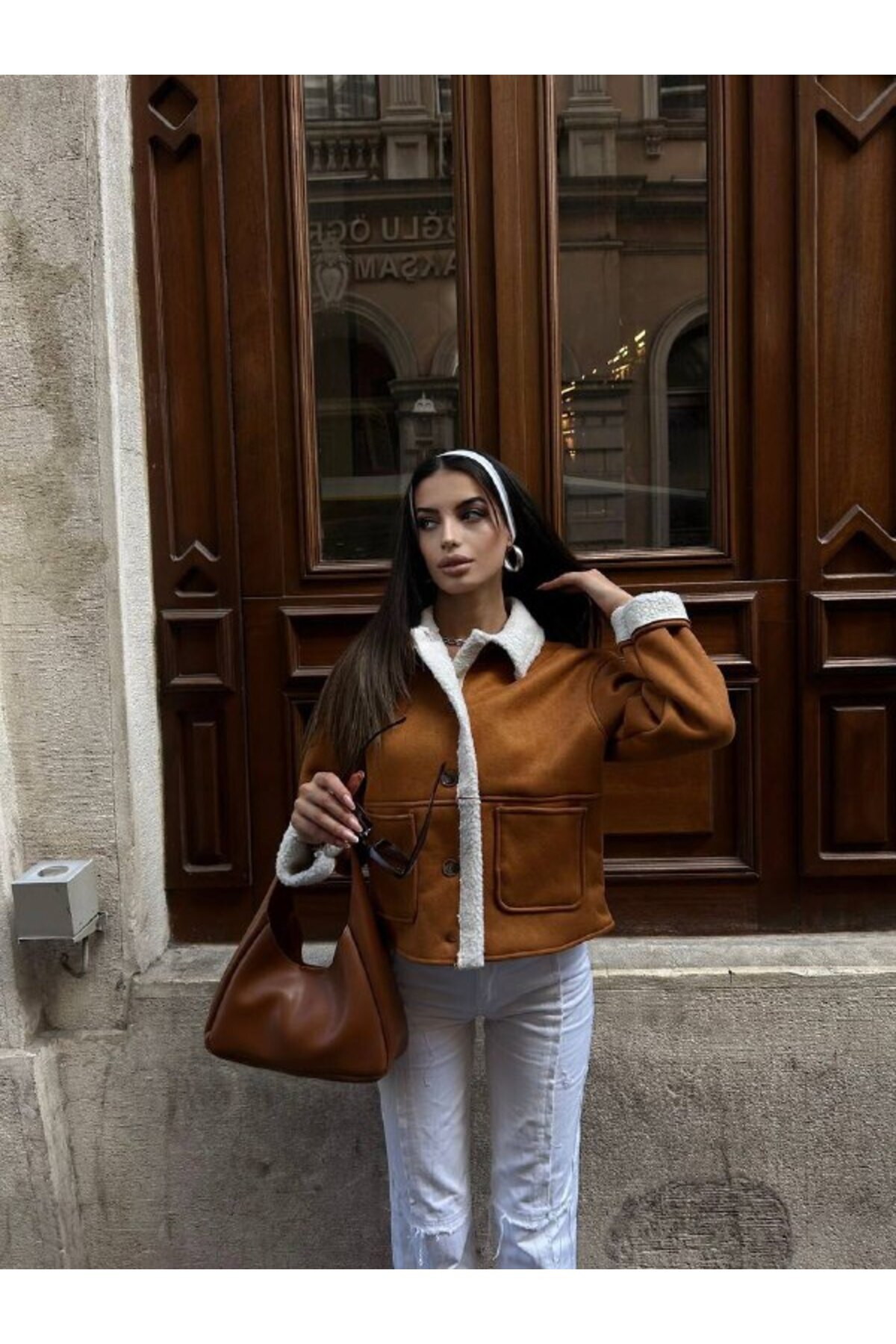 Yeni Sezon Uzun Kollu Kısa Süet Ceket Modern Düğmeli Kadın Ceket Yeni Sezon Uzun Kollu Kısa Süet Ceket Modern Düğmeli Kadın Ceket J-176304-MN 2XL-3XL