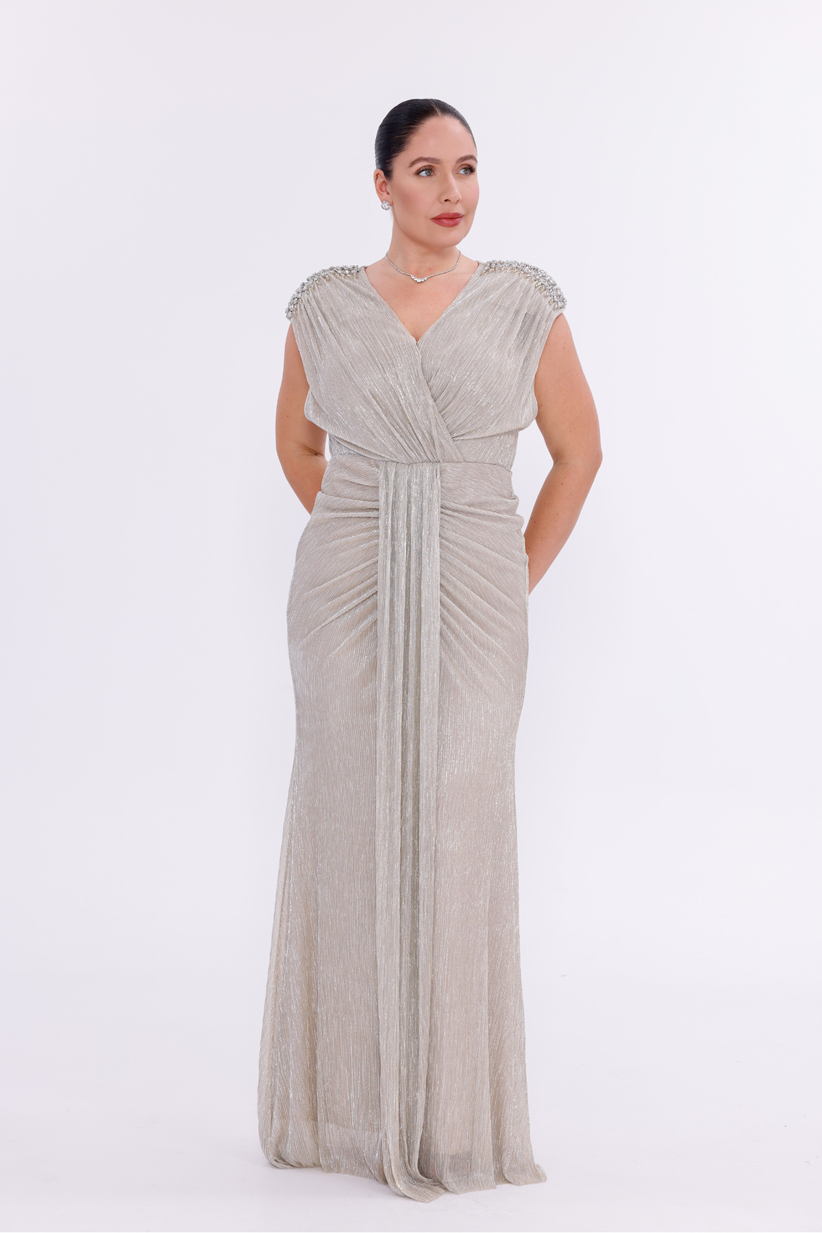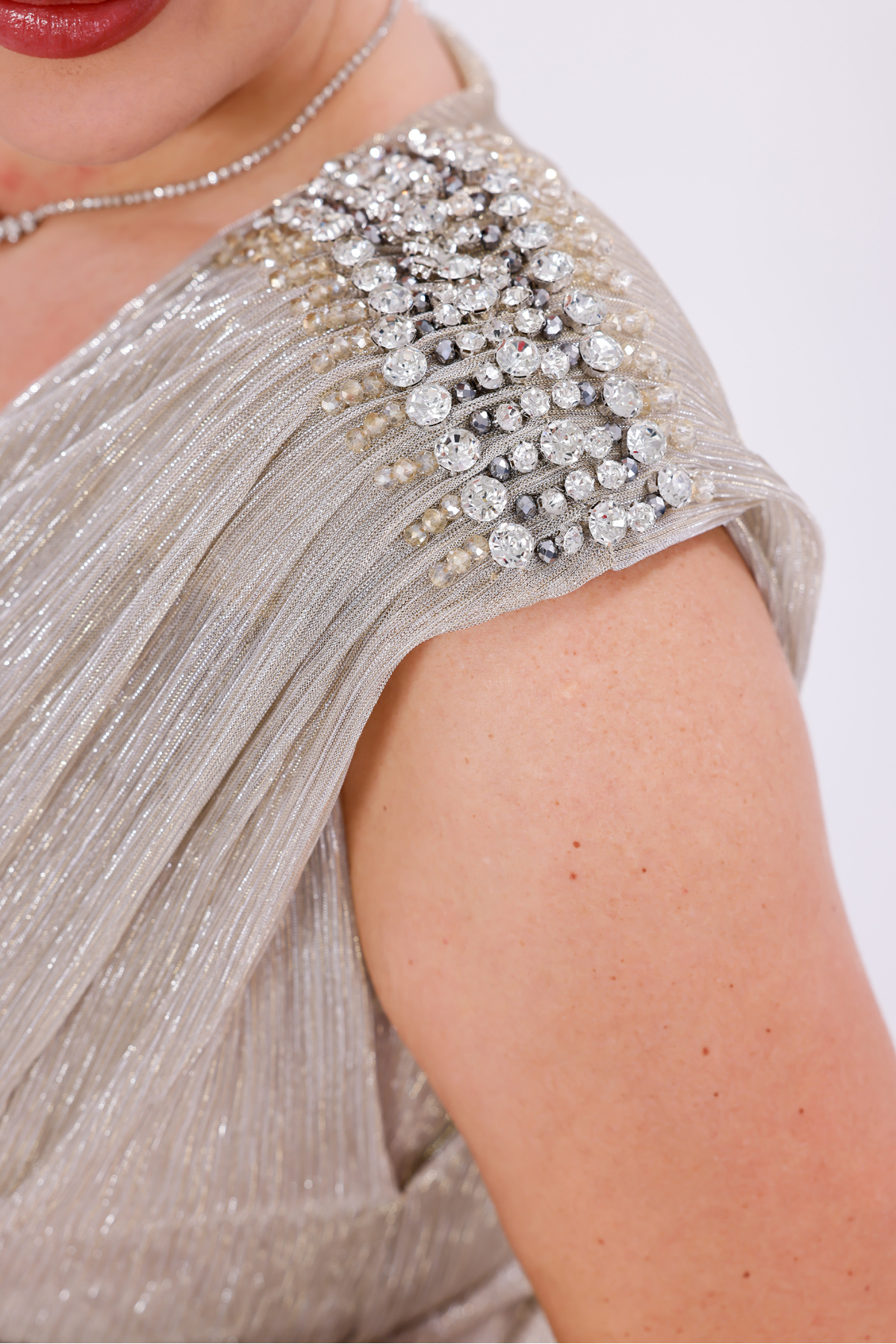 Simli Şifon Kolsuz Omuz Taş İşlemeli Drapeli Büyük Beden Abiye Elbise Simli Şifon Kolsuz Omuz Taş İşlemeli Drapeli Büyük Beden Abiye Elbise 4099 50