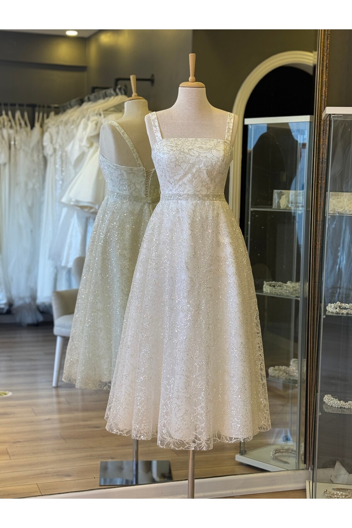Beyaz Simli Çicekli Kalp Yaka Midi Boy Nişan Ve Gece Elbisesi Beyaz Simli Çicekli Kalp Yaka Midi Boy Nişan Ve Gece Elbisesi LW48 42