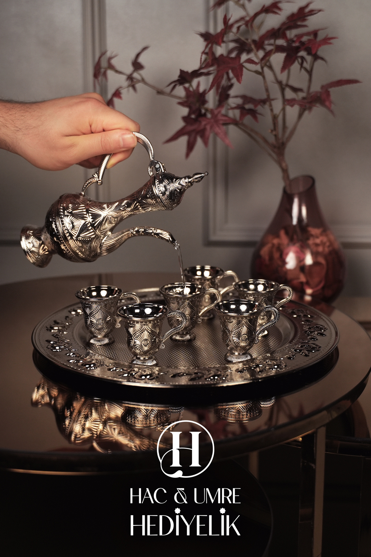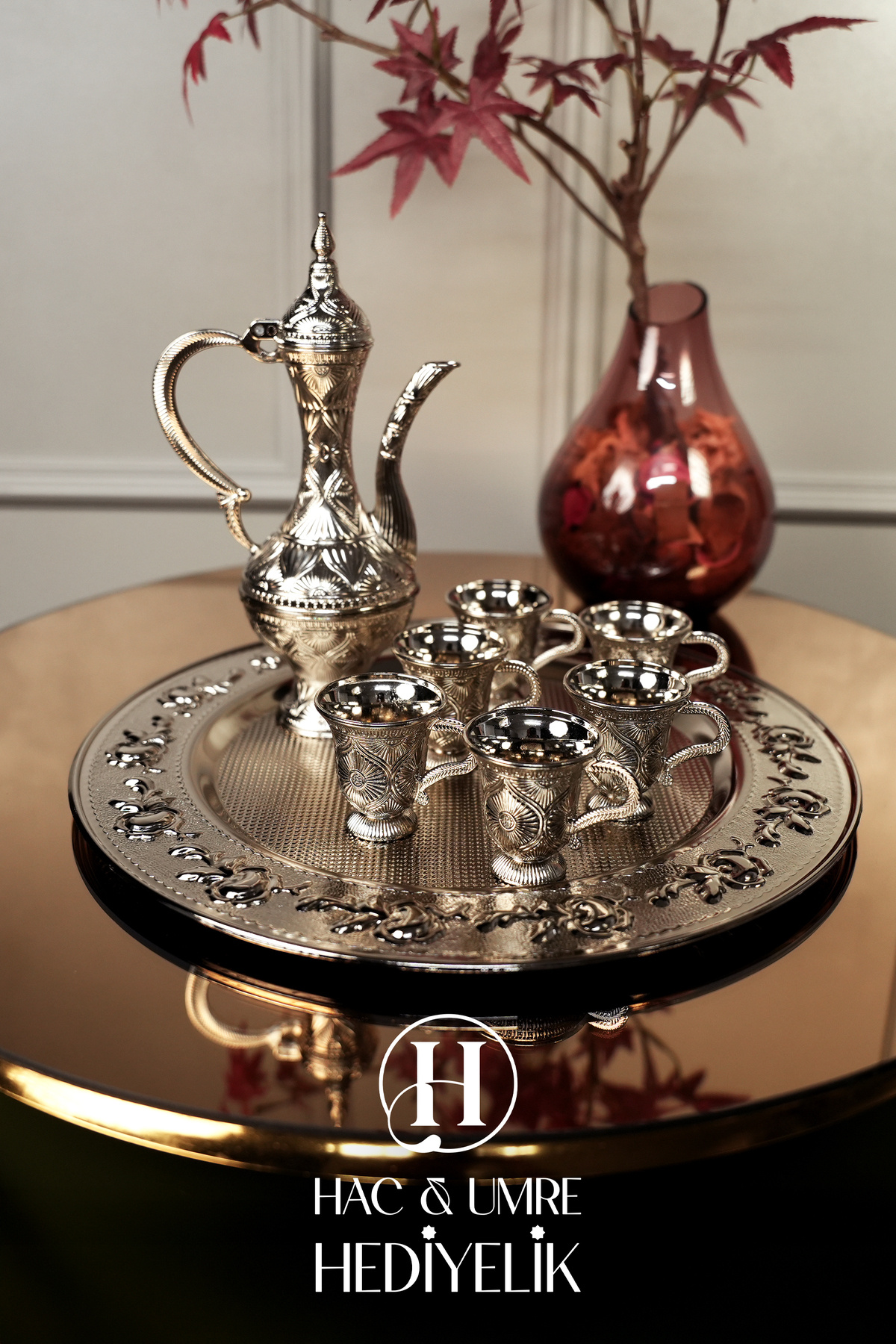 Gümüş Zemzem Takımı | 6 Kişilik Zemzem Sunum Seti | Zemzem Tepsisi, İbrik ve Fincan Seti Gümüş Zemzem Takımı | 6 Kişilik Zemzem Sunum Seti | Zemzem Tepsisi, İbrik ve Fincan Seti BSM 00700 تک سایز