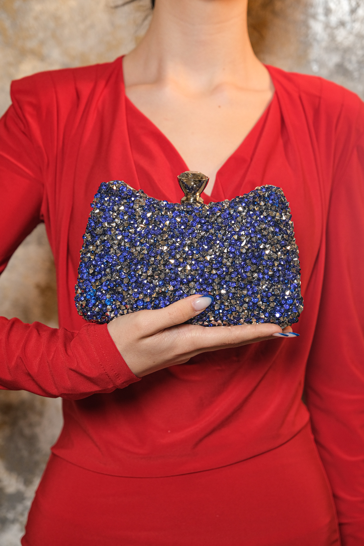 Kadın Saksmavi Taşlı Abiye Clutch Portföy Çanta Kadın Saksmavi Taşlı Abiye Clutch Portföy Çanta RZ-256 تک سایز