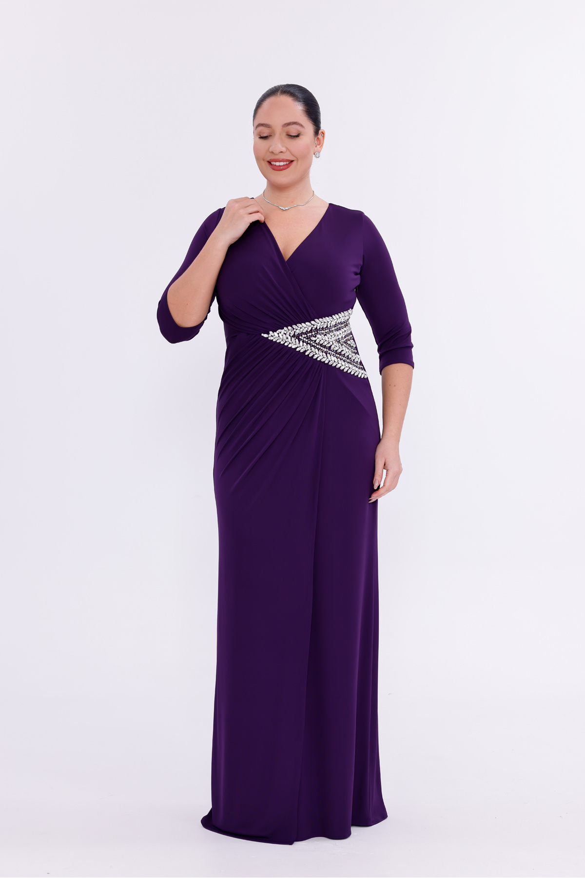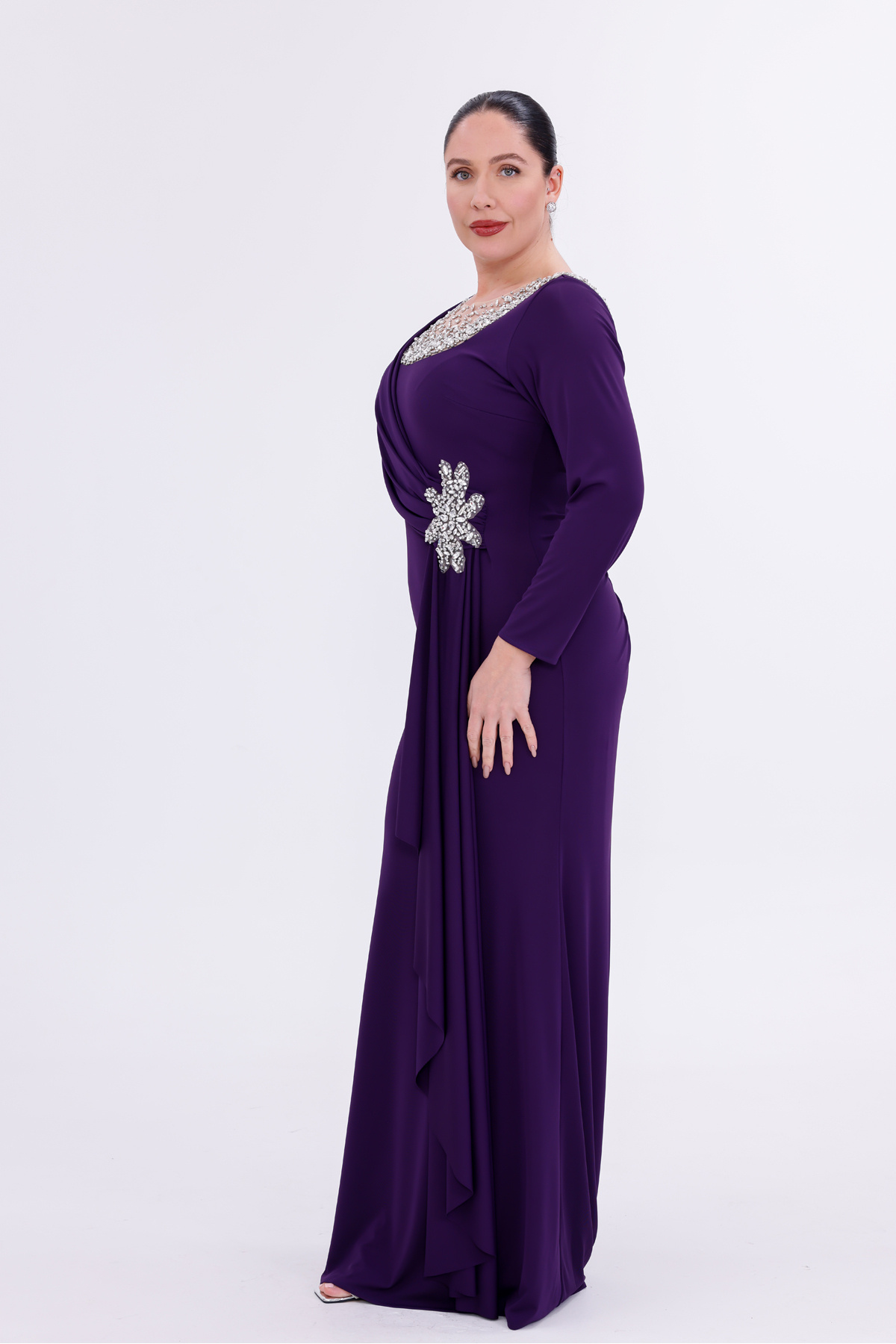 Likralı Krep Yaka Taş İşlemeli Uzun Kol Büyük Beden Abiye Elbise Likralı Krep Yaka Taş İşlemeli Uzun Kol Büyük Beden Abiye Elbise 4997 48