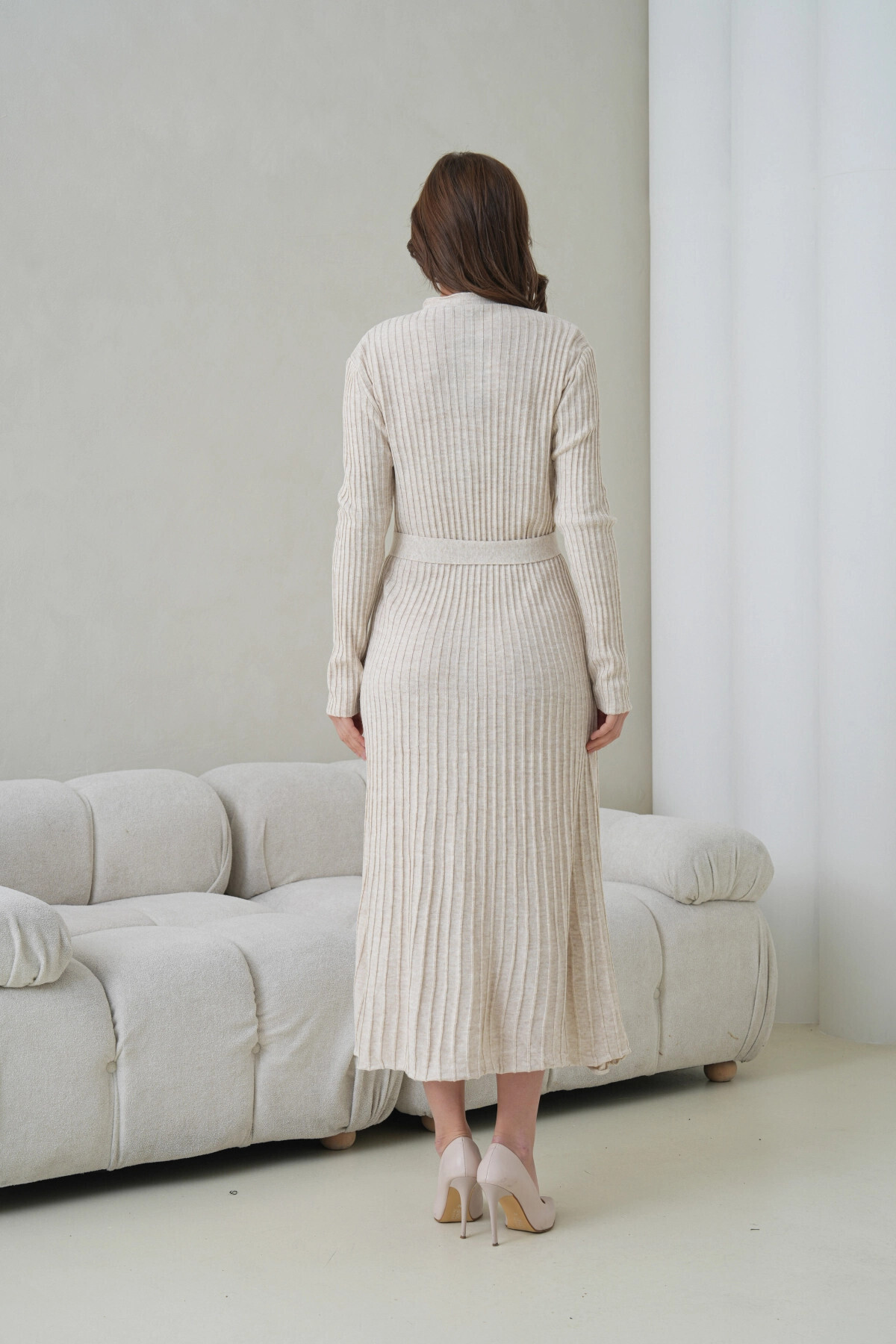 Kadın V Yaka Ful Düğme Kapama Kemer Detay Maksi Boy Fitilli Triko Elbise Kadın V Yaka Ful Düğme Kapama Kemer Detay Maksi Boy Fitilli Triko Elbise 12369 Standart
