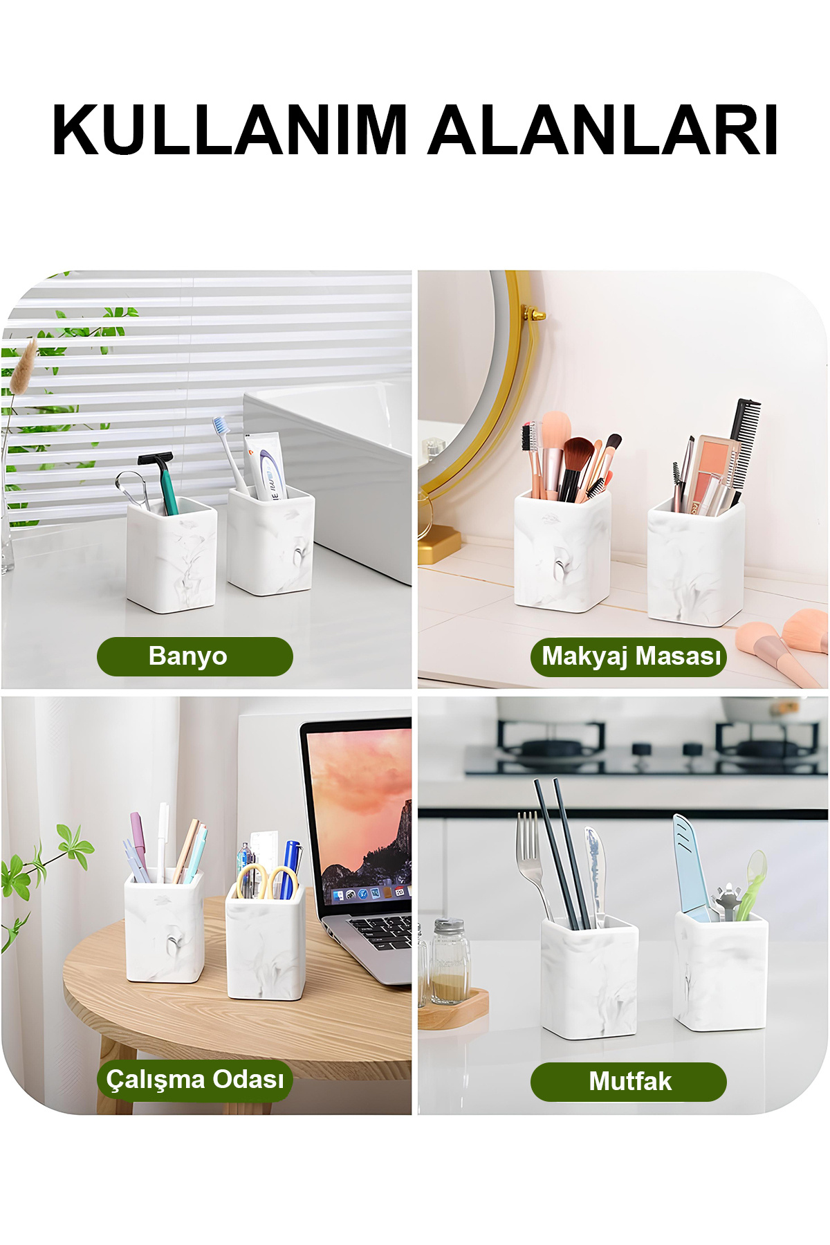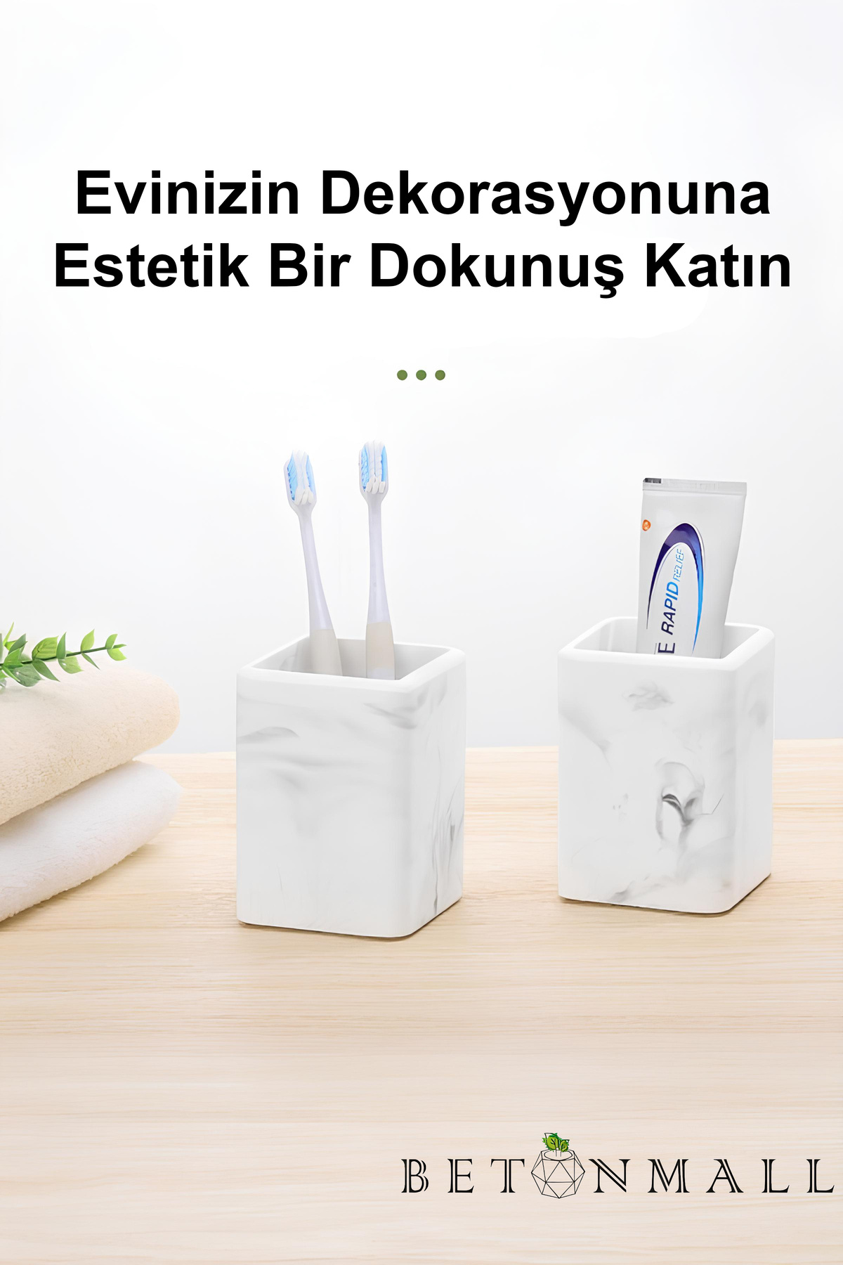 Beton Diş Fırçalık Kalemlik Makyaj Fırçası Organizer Seti 3'lü |Mutfak Banyo Dekoratif Düzenleyici Beton Diş Fırçalık Kalemlik Makyaj Fırçası Organizer Seti 3'lü |Mutfak Banyo Dekoratif Düzenleyici 2 ADET KARE + 1 ADET TEPSİ تک سایز