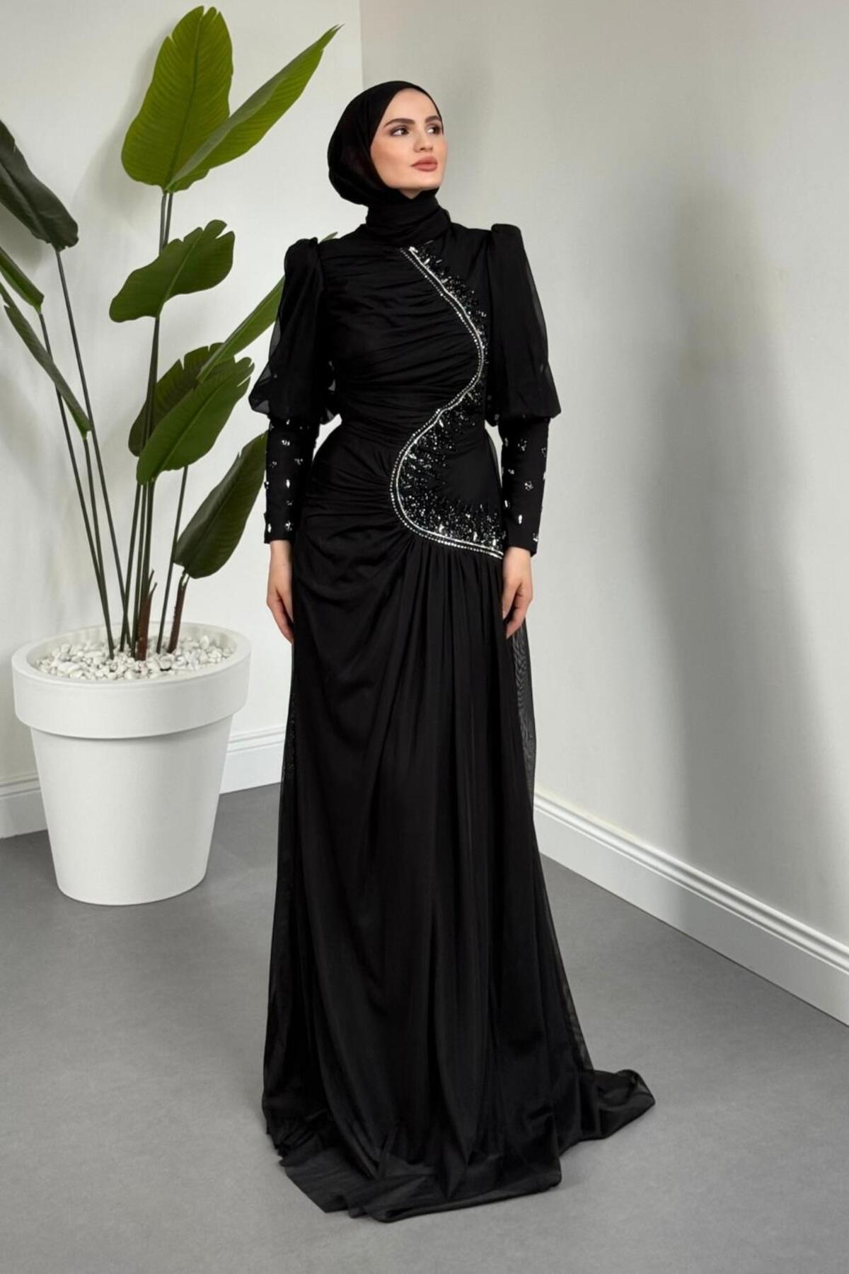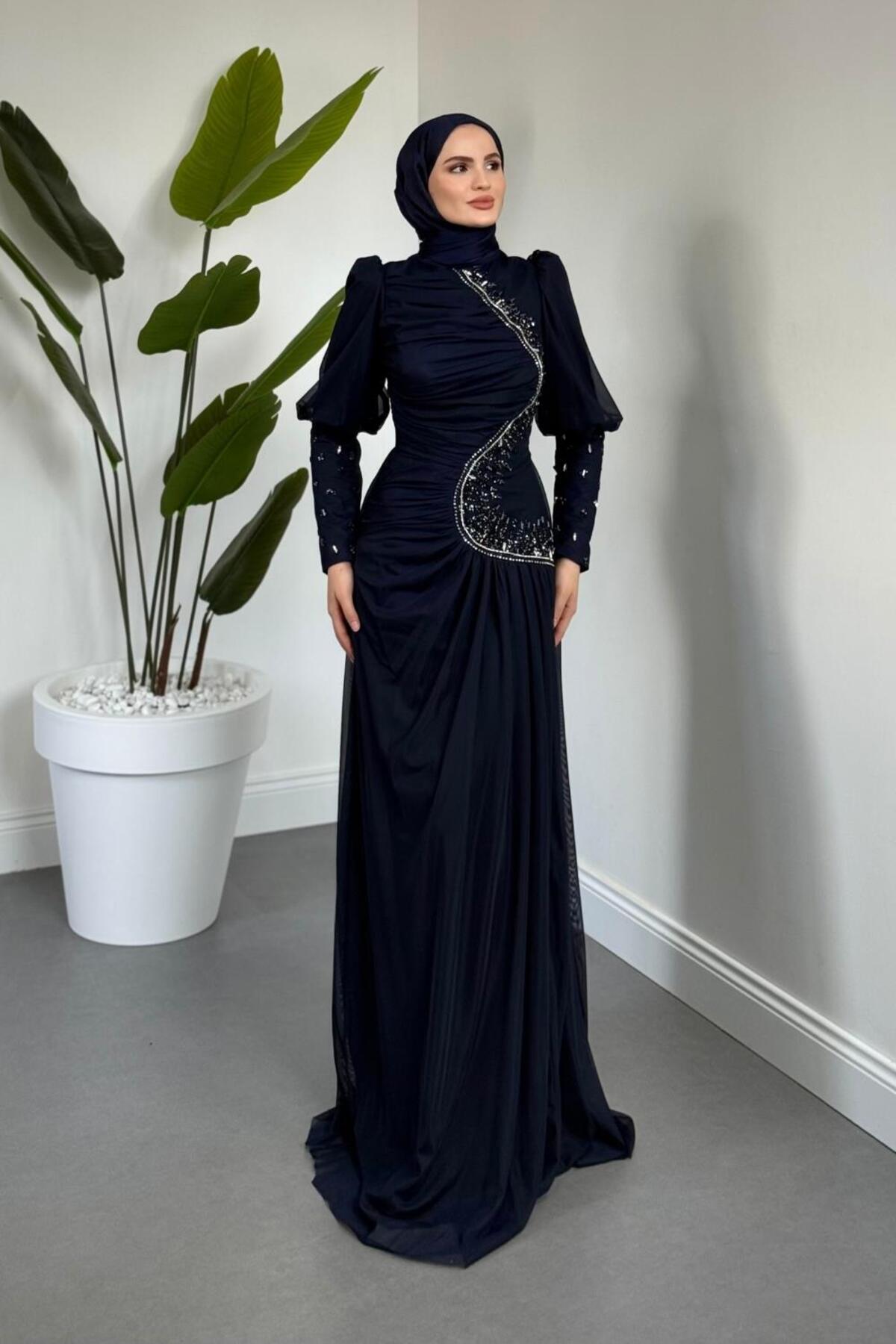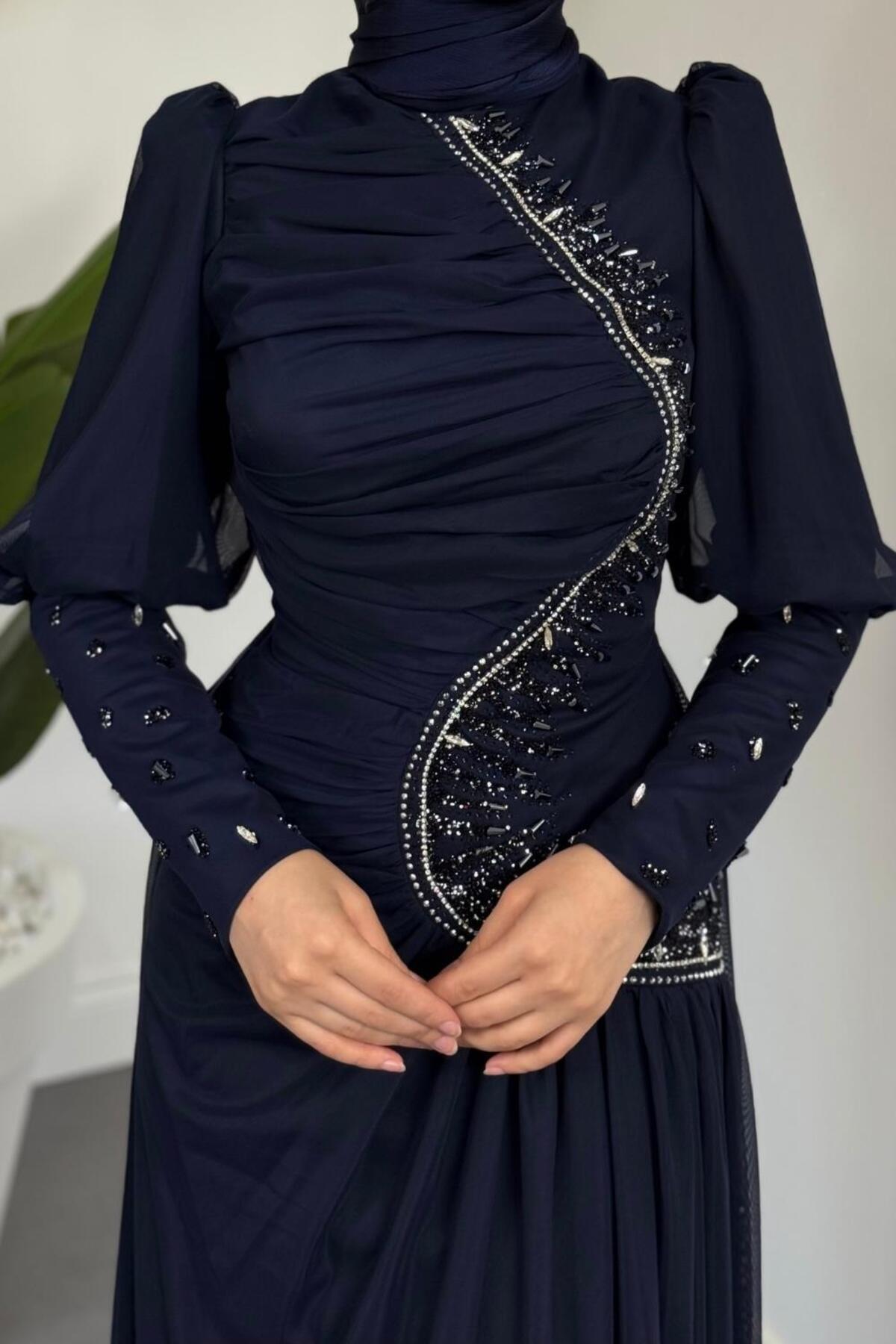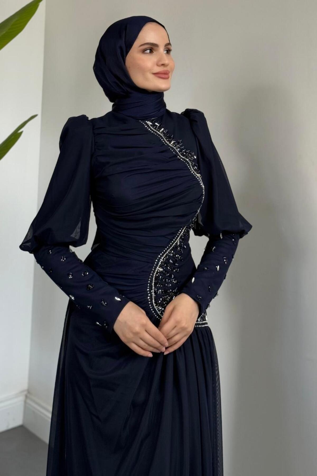 Aveline Yandan Taşlı Tül Abiye Lacivert Aveline Yandan Taşlı Tül Abiye Lacivert 5360 44