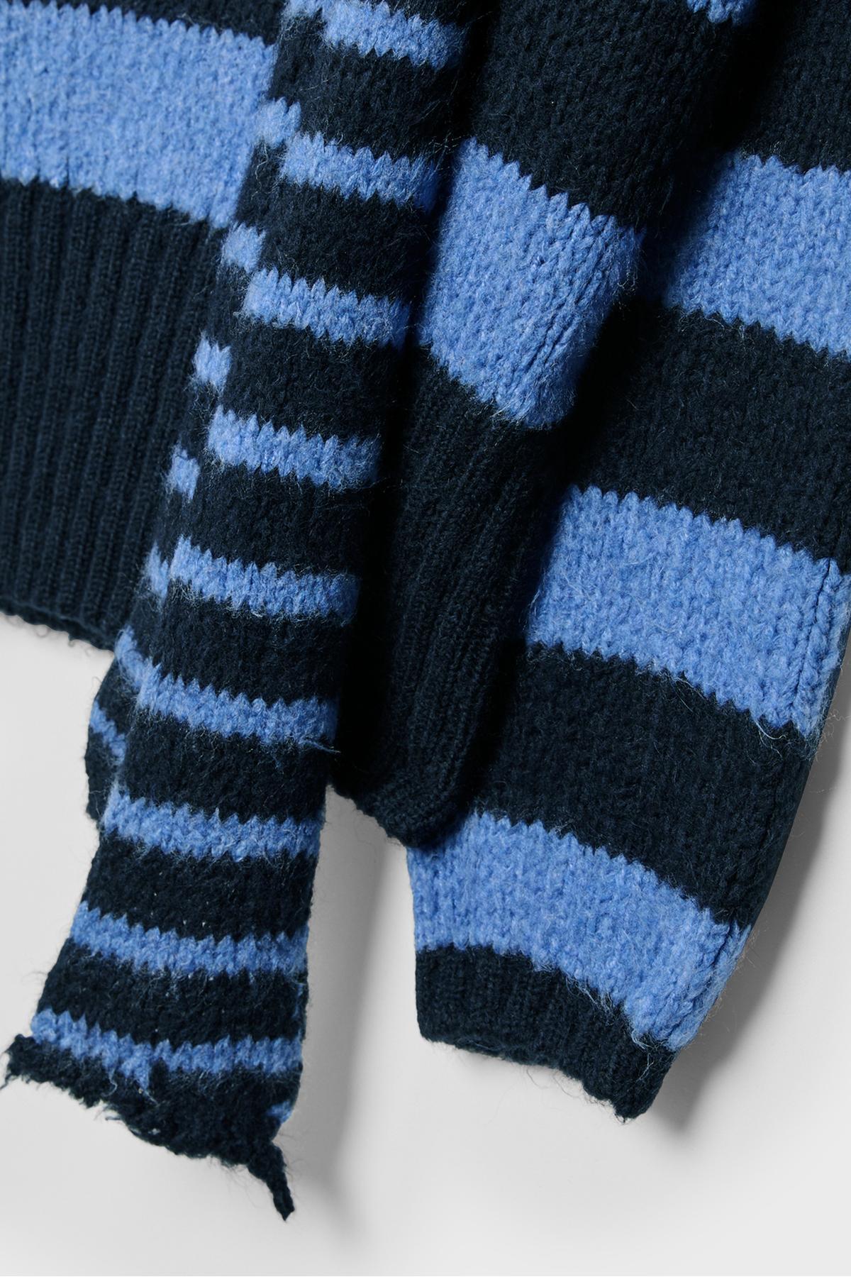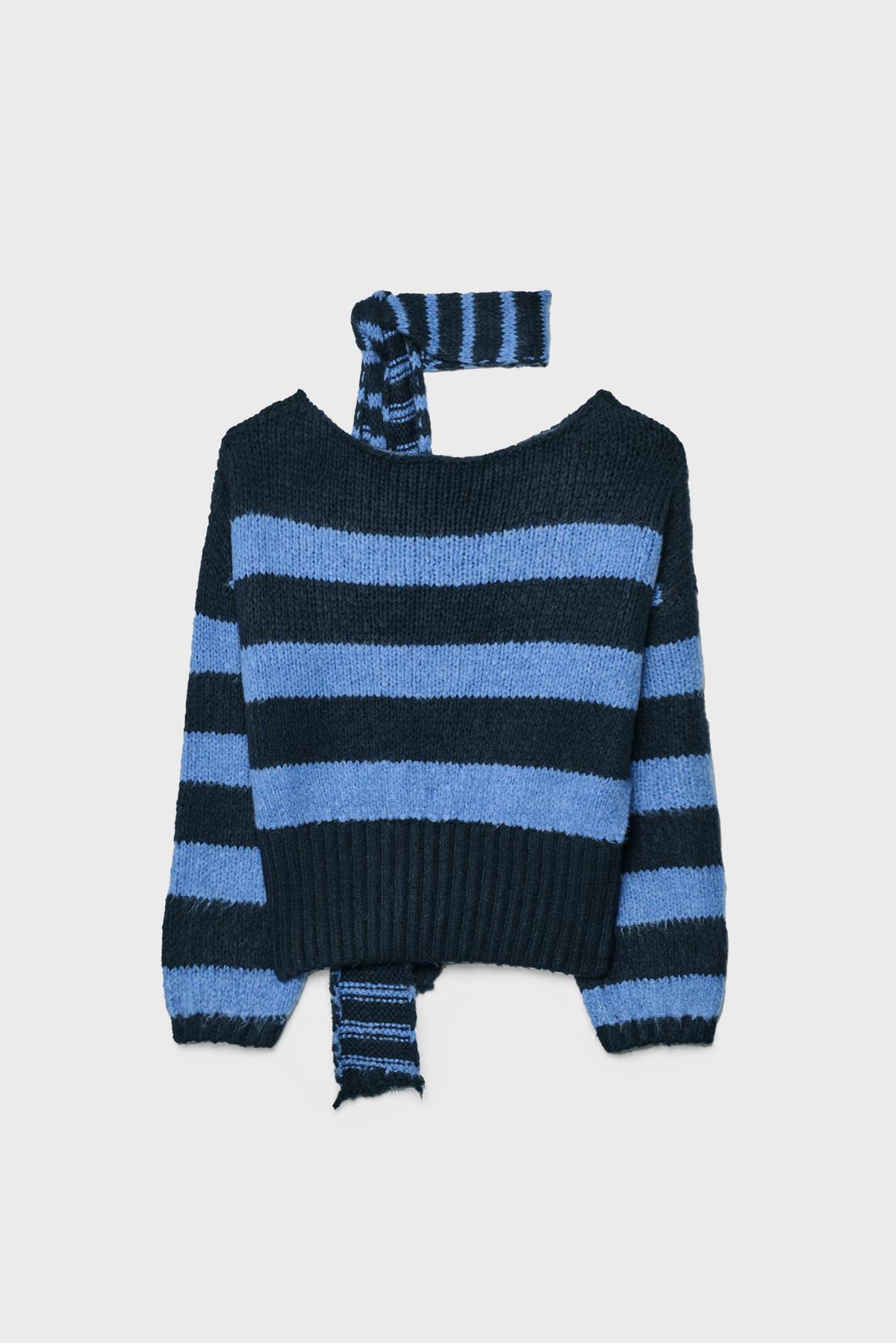 Çizgili, geniş yaka, fularlı triko kazak Çizgili, geniş yaka, fularlı triko kazak 01573242 XL
