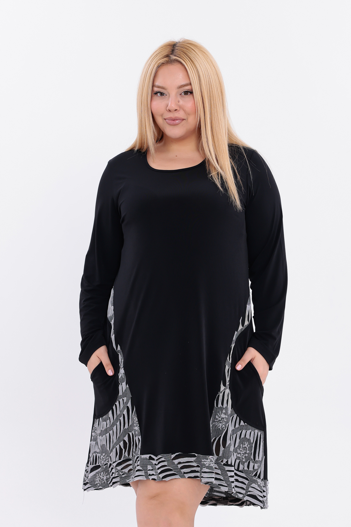 Modern Şık Tasarım Dantel Kenarlı Uzun Kollu Bisiklet Yaka Asimetrik Büyük Beden Elbise 5018 Modern Şık Tasarım Dantel Kenarlı Uzun Kollu Bisiklet Yaka Asimetrik Büyük Beden Elbise 5018 60