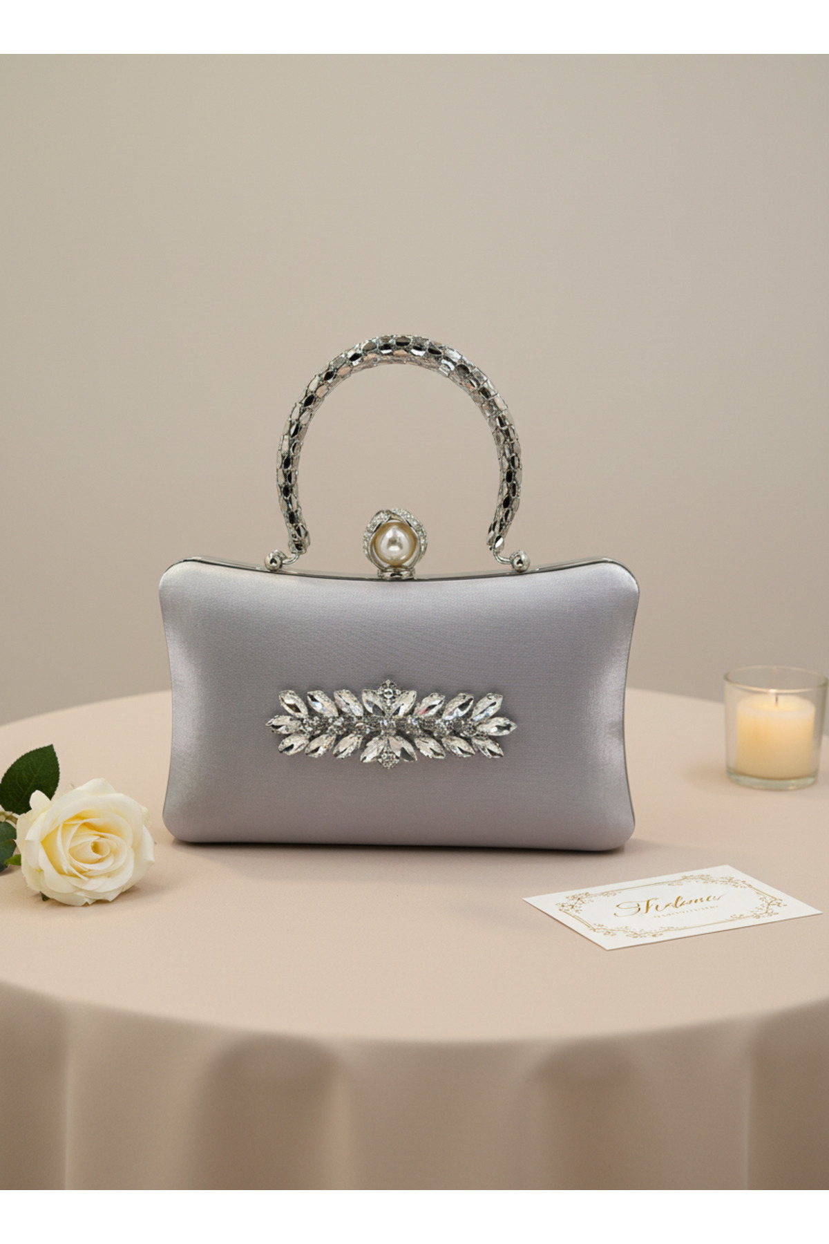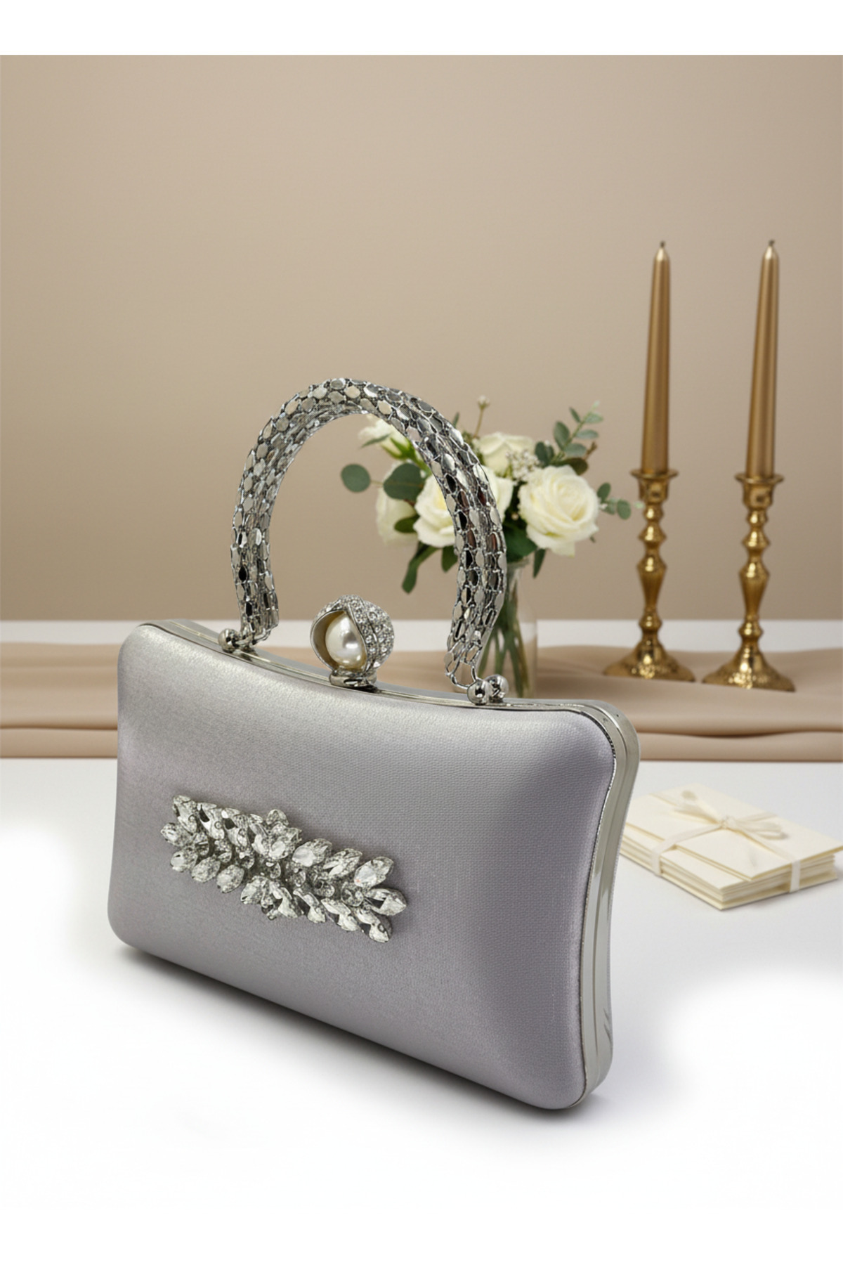 Gümüş Gri İnci ve Kristal İşlemeli Simli Saten Abiye Çanta Düğün Nişan Mezuniyet Gümüş Gri İnci ve Kristal İşlemeli Simli Saten Abiye Çanta Düğün Nişan Mezuniyet 15-9 تک سایز