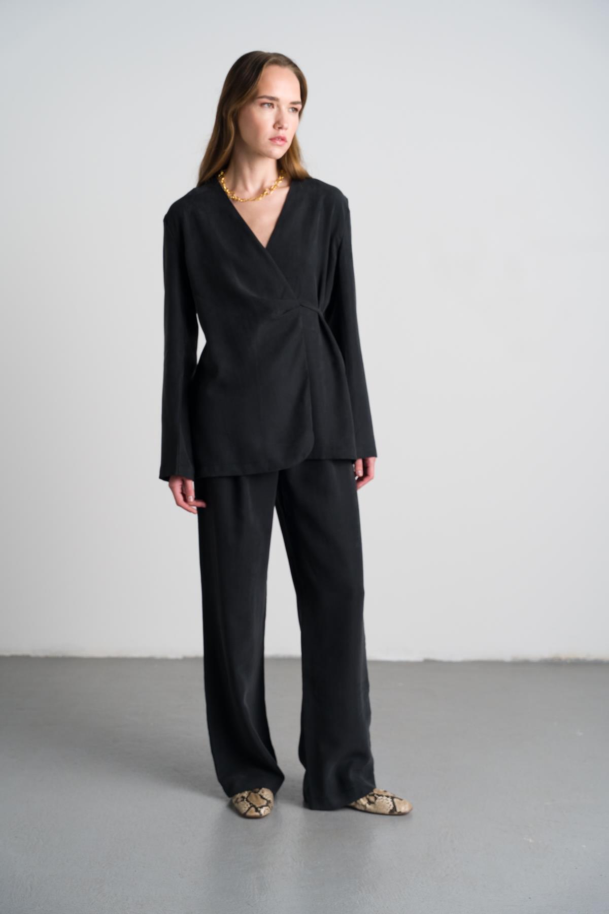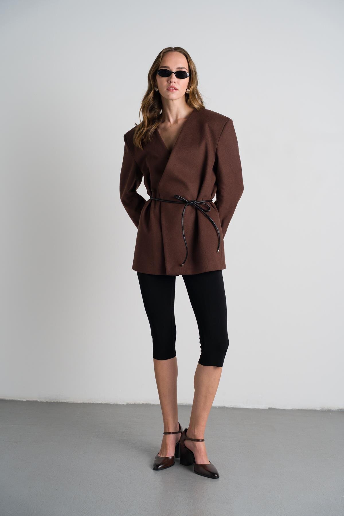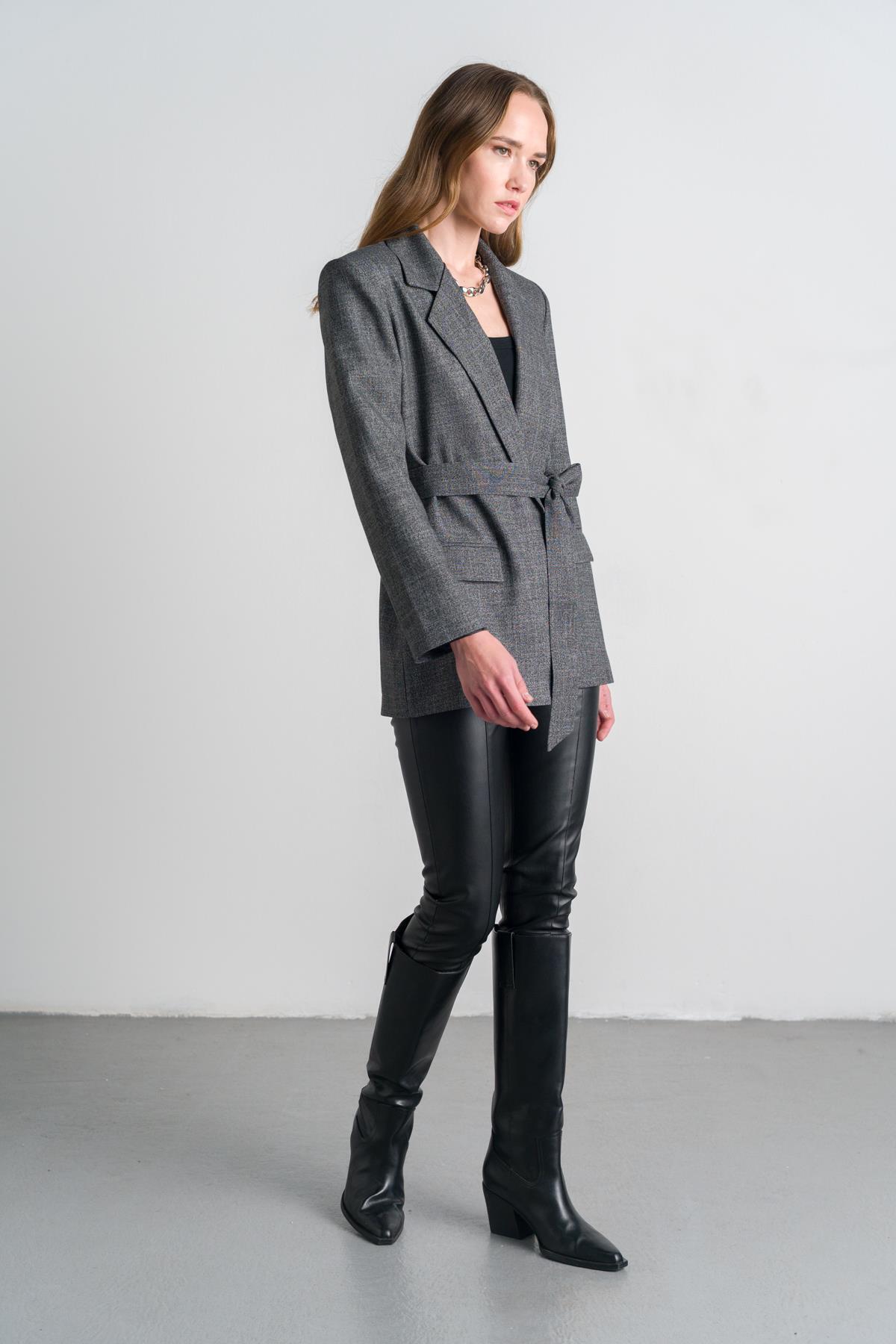 Gri Belden Bağlamalı Kruvaze Blazer Ceket Gri Belden Bağlamalı Kruvaze Blazer Ceket TXA0BC86A848 42