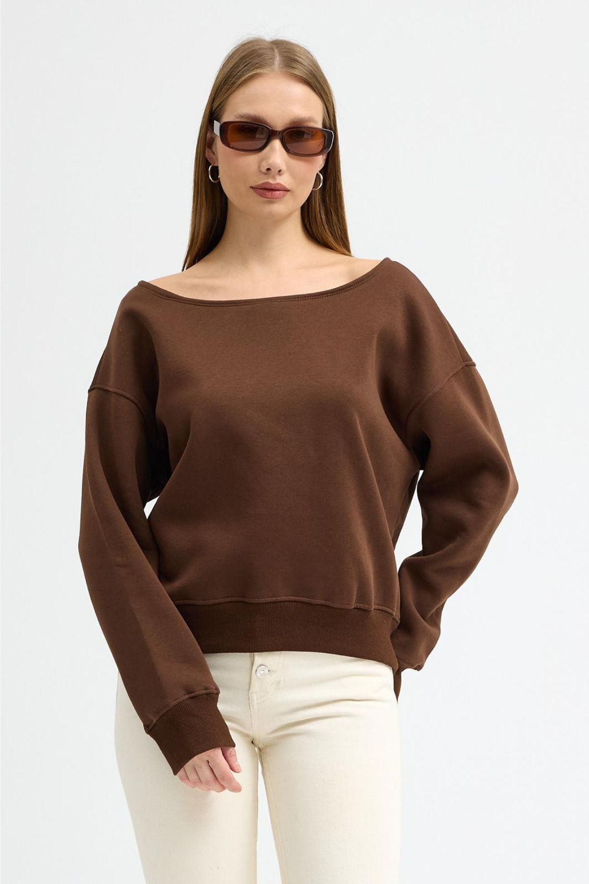 Üç İplik Şardonlu Uzun Kollu Kayık Yaka Sweatshirt Üç İplik Şardonlu Uzun Kollu Kayık Yaka Sweatshirt 1613 L