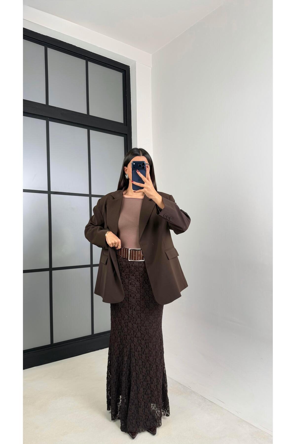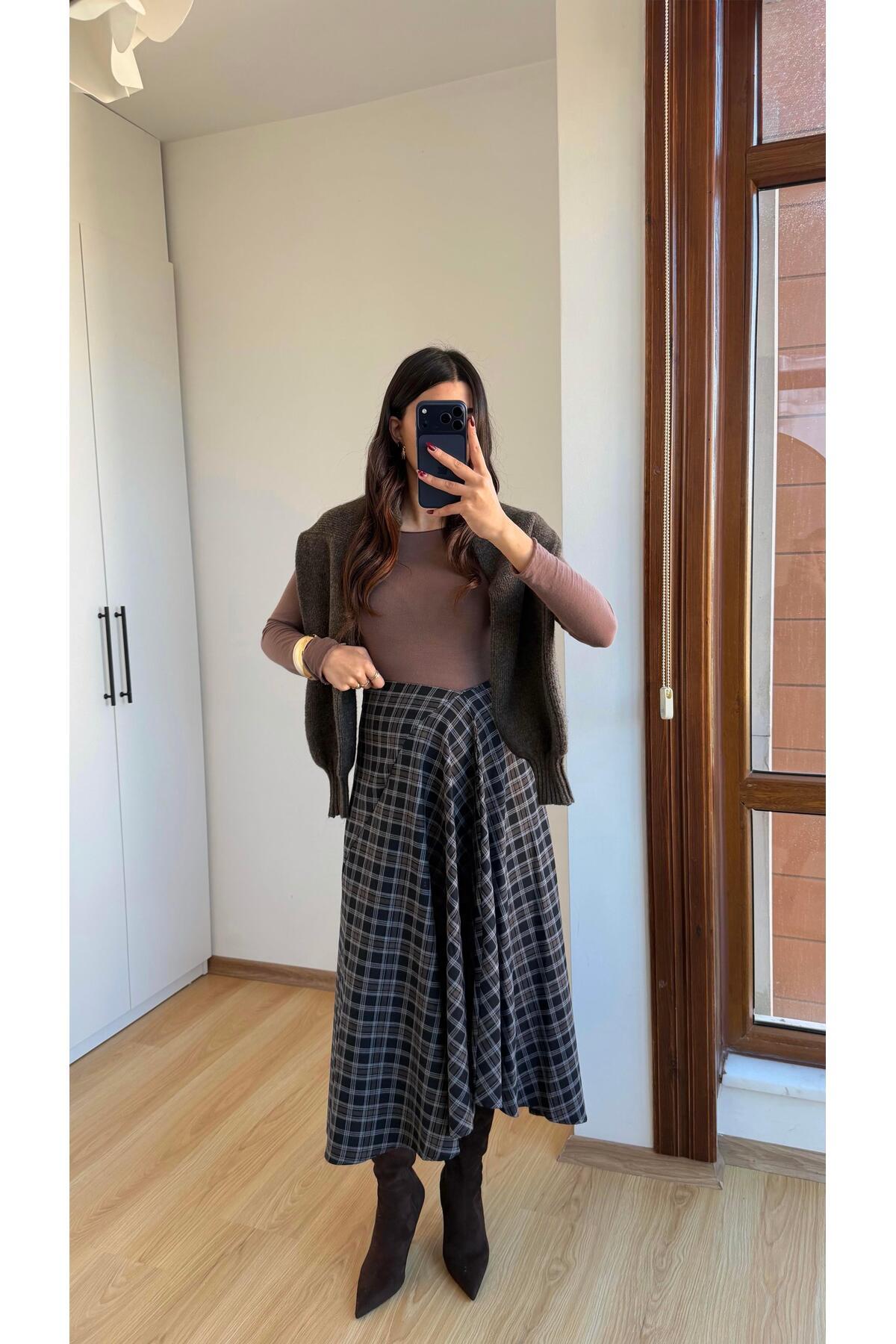 Acı Kahve Beli Lastikli Saten Etek GAUS-00819 Acı Kahve Beli Lastikli Saten Etek GAUS-00819 L