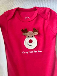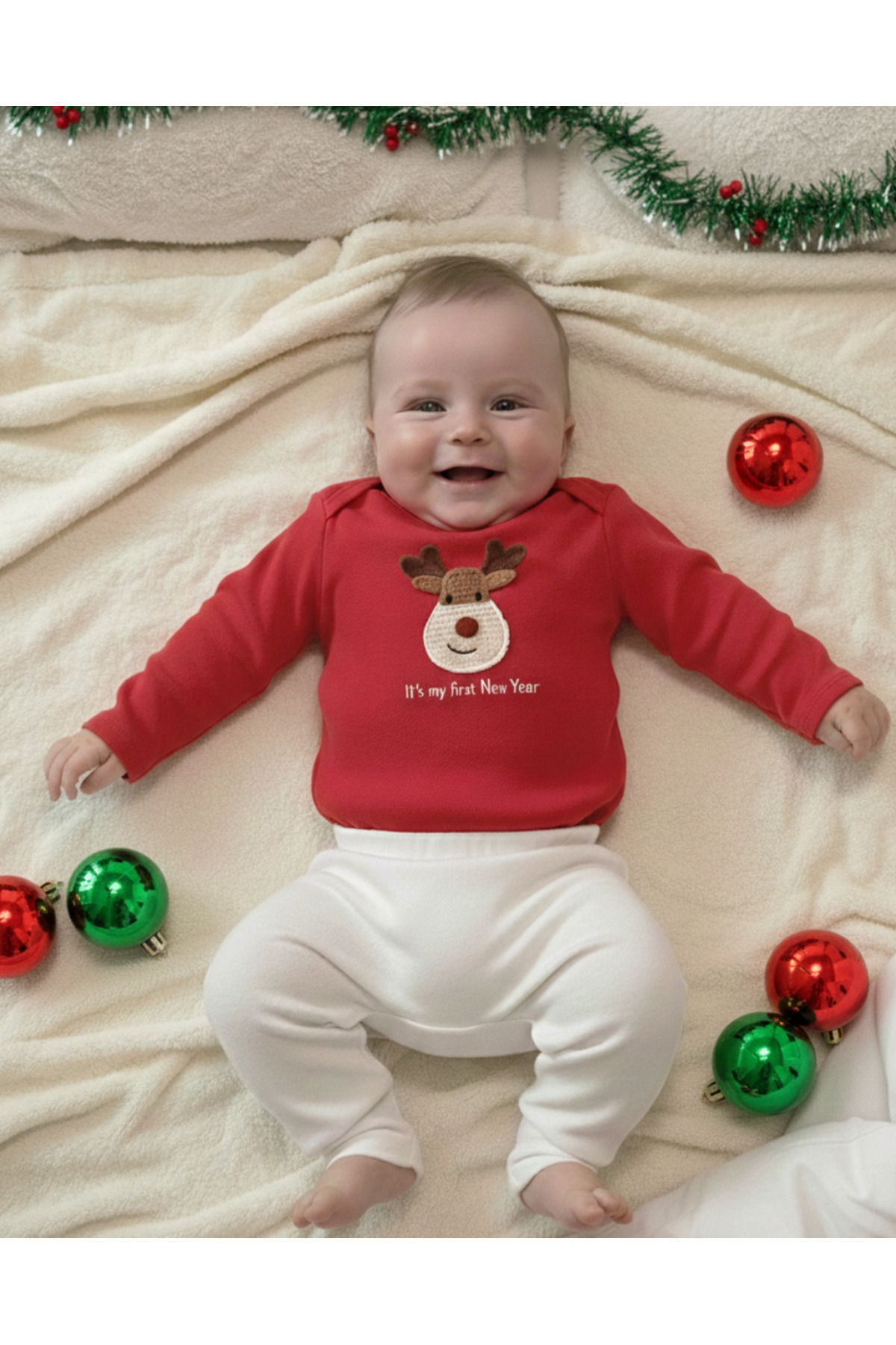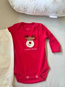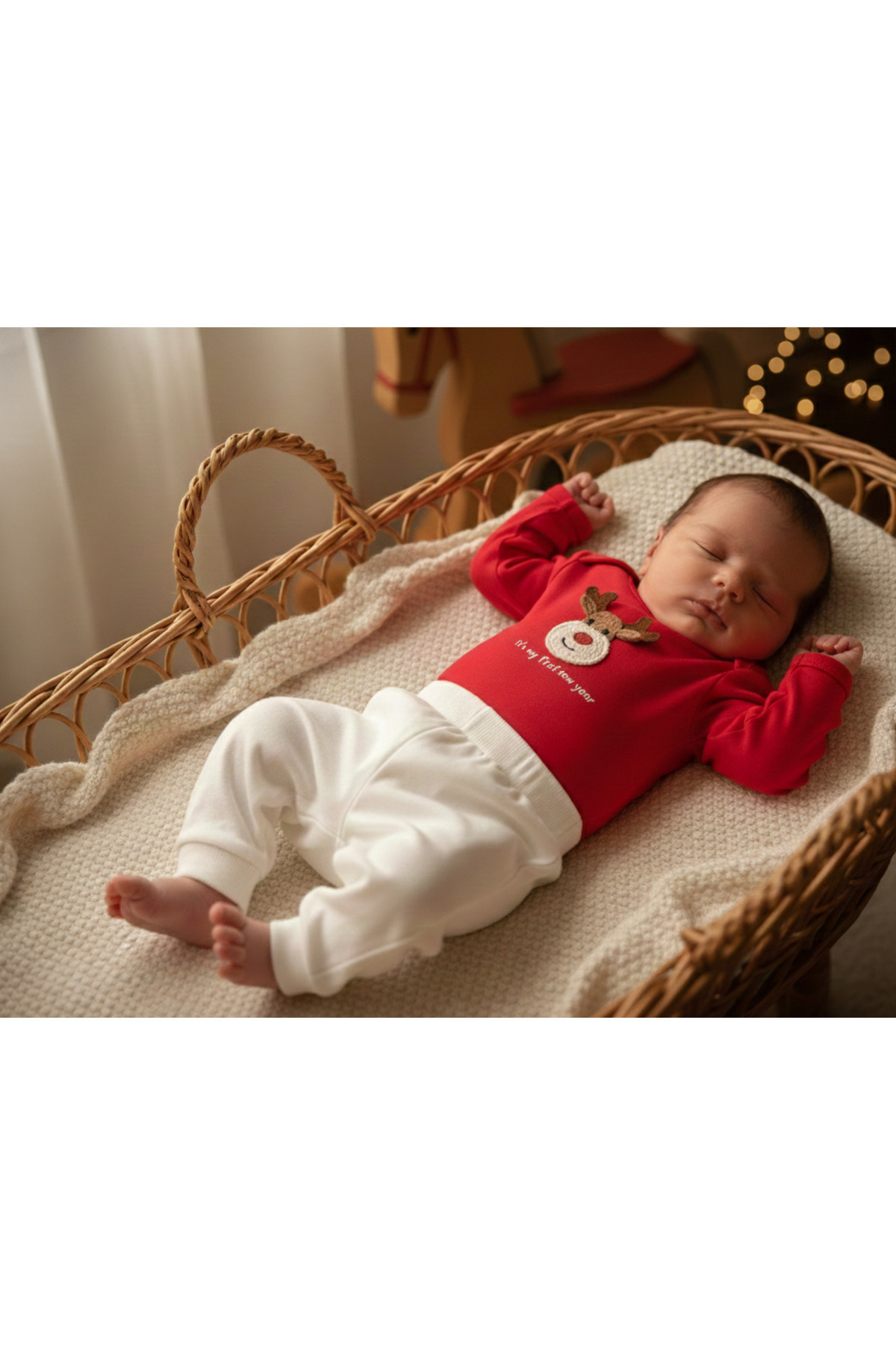 Yılbaşı Temalı Kırmızı Geyik Desenli Bebek Tulum İlk Yeni Yıl Kıyafeti Kostüm 2’li Bebek Seti Yılbaşı Temalı Kırmızı Geyik Desenli Bebek Tulum İlk Yeni Yıl Kıyafeti Kostüm 2’li Bebek Seti FIRSTXMAS 6-9 AY