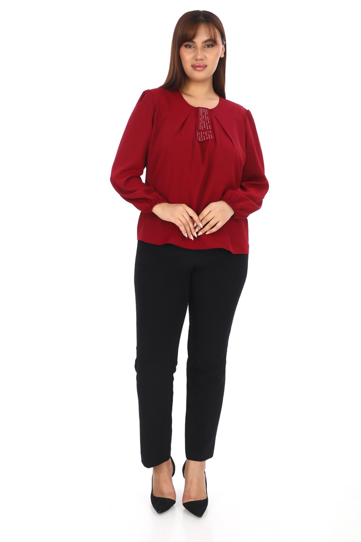 Taş Detaylı Piliseli Uzun Kollu Bordo Bluz Taş Detaylı Piliseli Uzun Kollu Bordo Bluz 3737 52