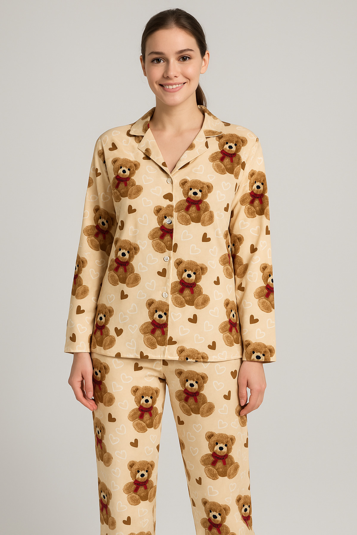 Kadın Süet Düğmeli Pijama Takımı Kadın Süet Düğmeli Pijama Takımı 8283838339 2XL