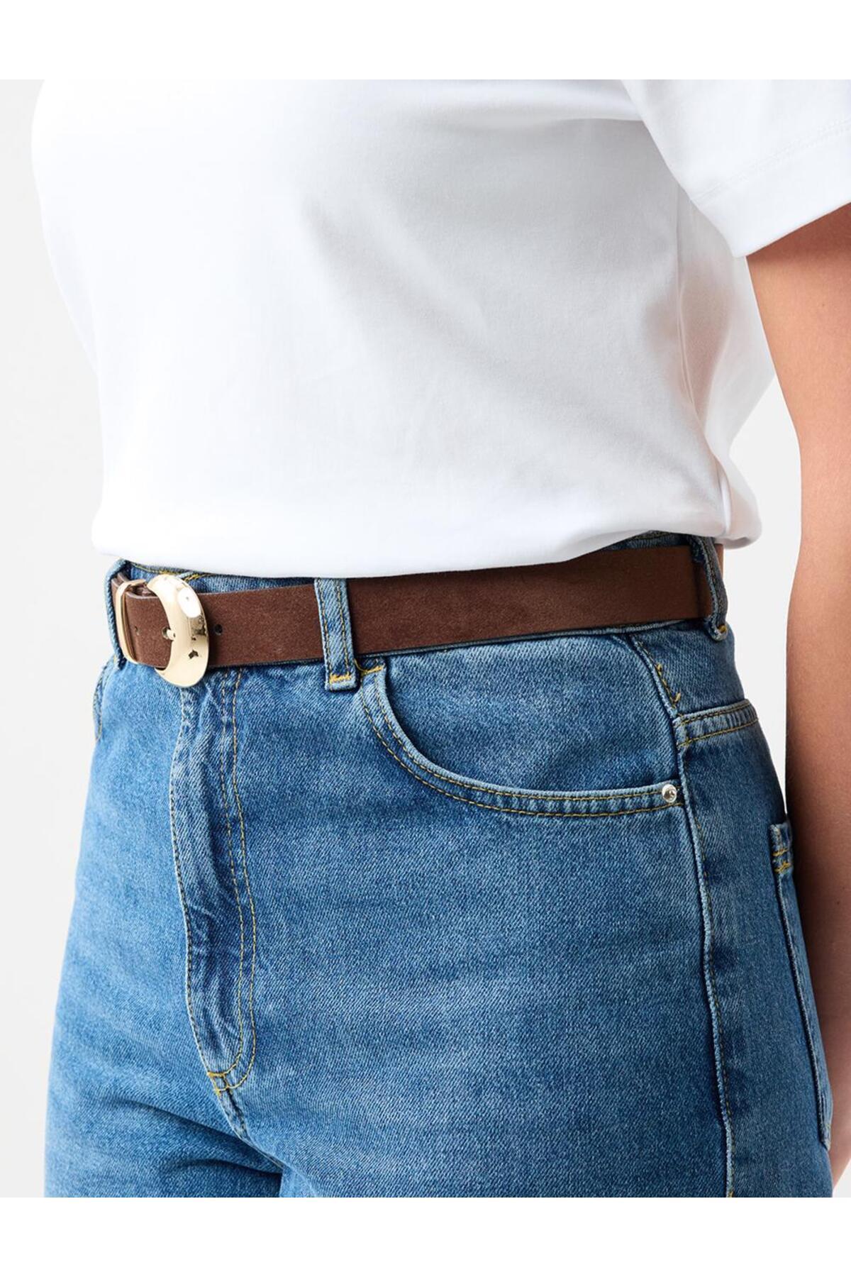 Kahverengi Metal Tokalı Süet Görünümlü Kemer Kahverengi Metal Tokalı Süet Görünümlü Kemer 5WW415459 100