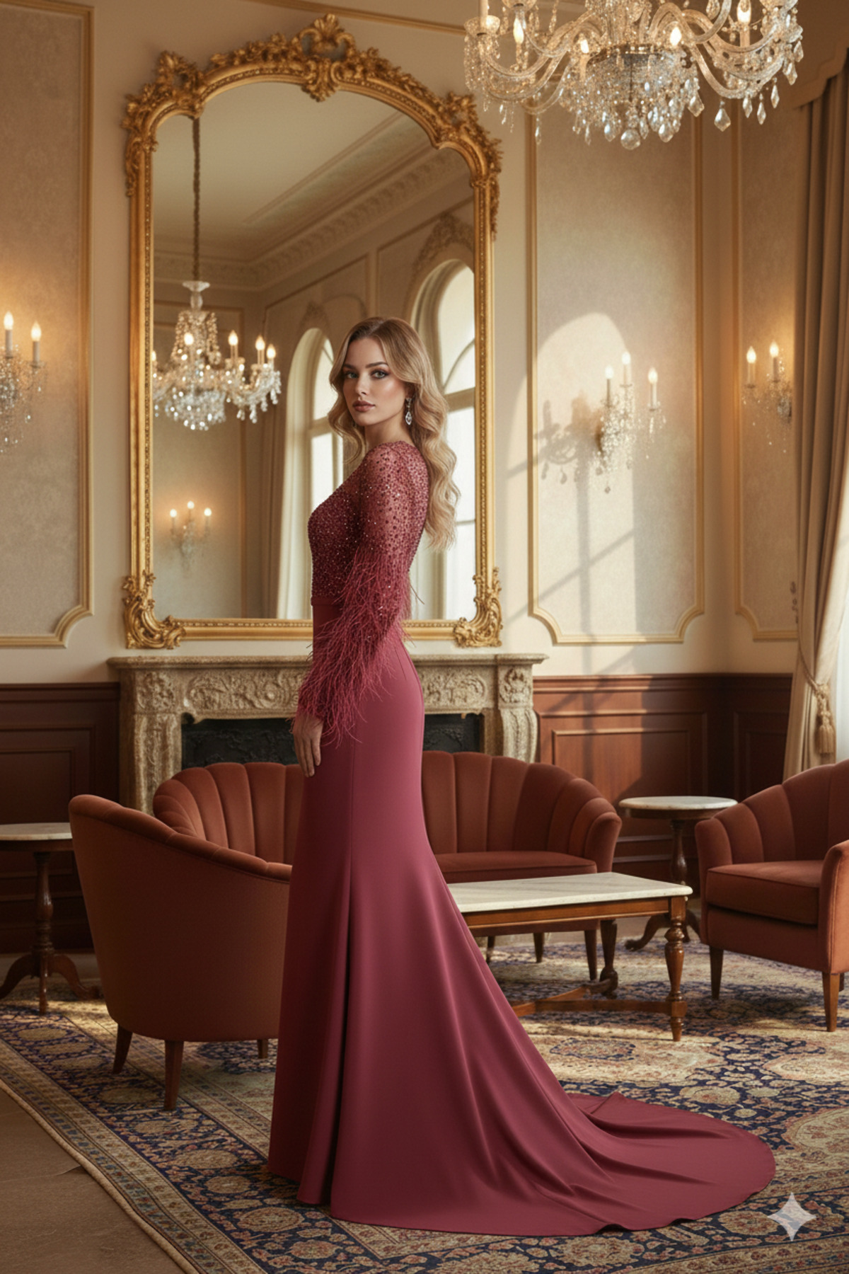 TAŞLI KUYRUKLU BALIK MODEL ABİYE- BORDO TAŞLI KUYRUKLU BALIK MODEL ABİYE- BORDO 8Y6102BBB++KMB 42