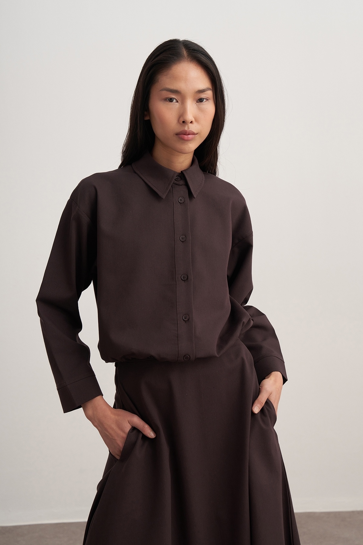Kadın Gabardin Gömlekli Kloş Etek Takım Kahve Kadın Gabardin Gömlekli Kloş Etek Takım Kahve 25-AW-GBR-562TKM-EBU-SBHR L/XL