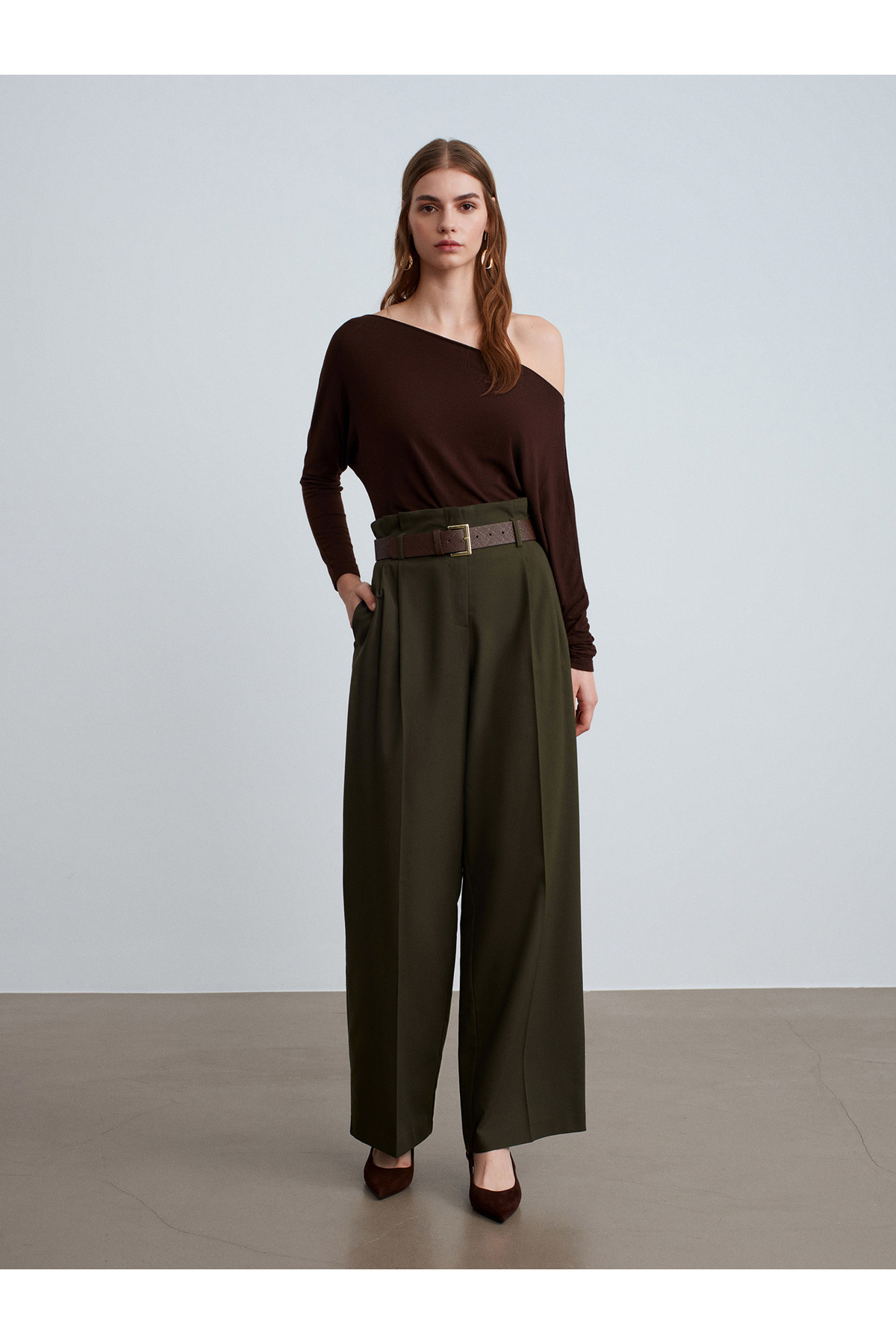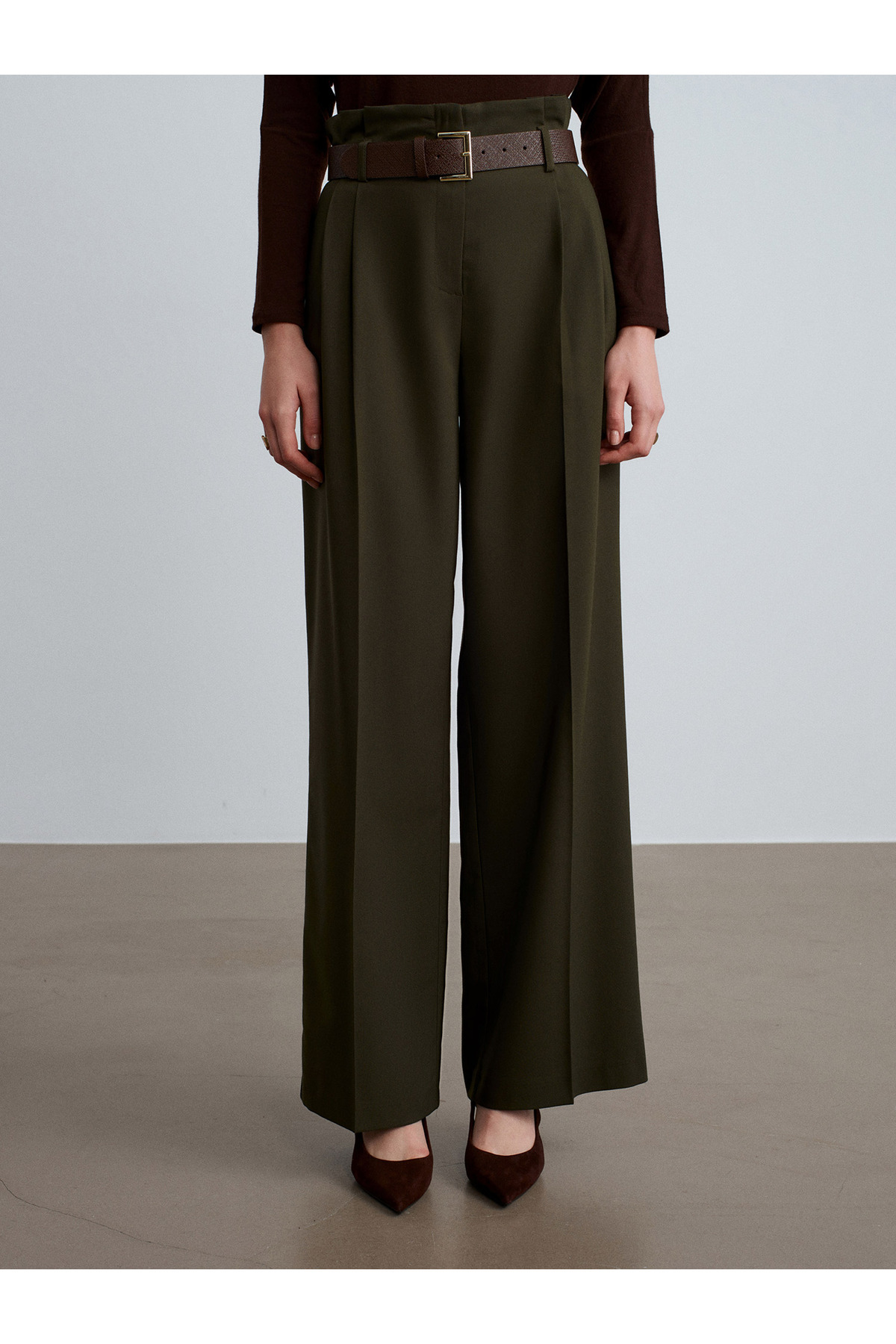 72219 Beli Lastikli Kemerli Kumaş Pantolon-Haki 72219 Beli Lastikli Kemerli Kumaş Pantolon-Haki 101A72219 40
