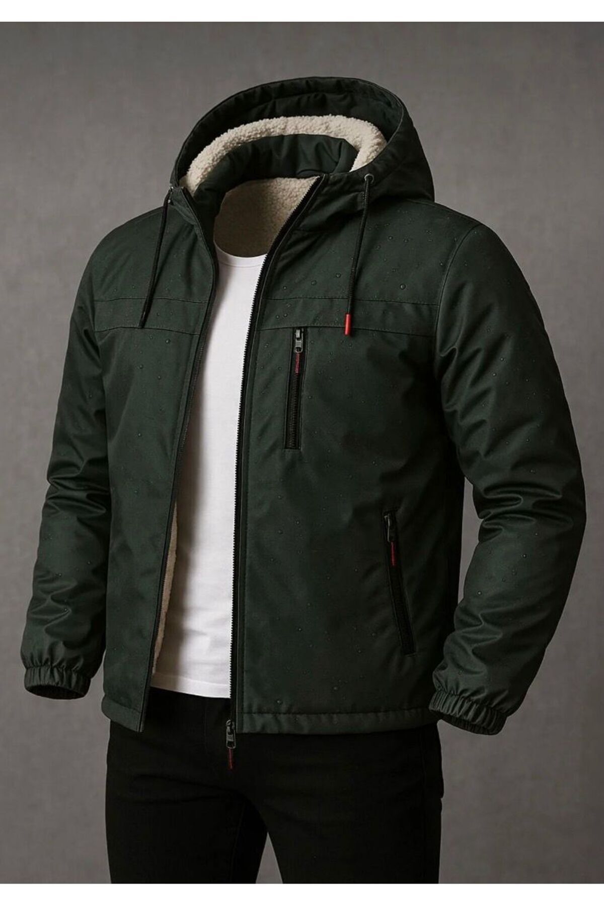 Erkek Mont Yağmurluk Kürklü Kapşonlu EKRU Erkek Mont Yağmurluk Kürklü Kapşonlu EKRU MONT 2XL