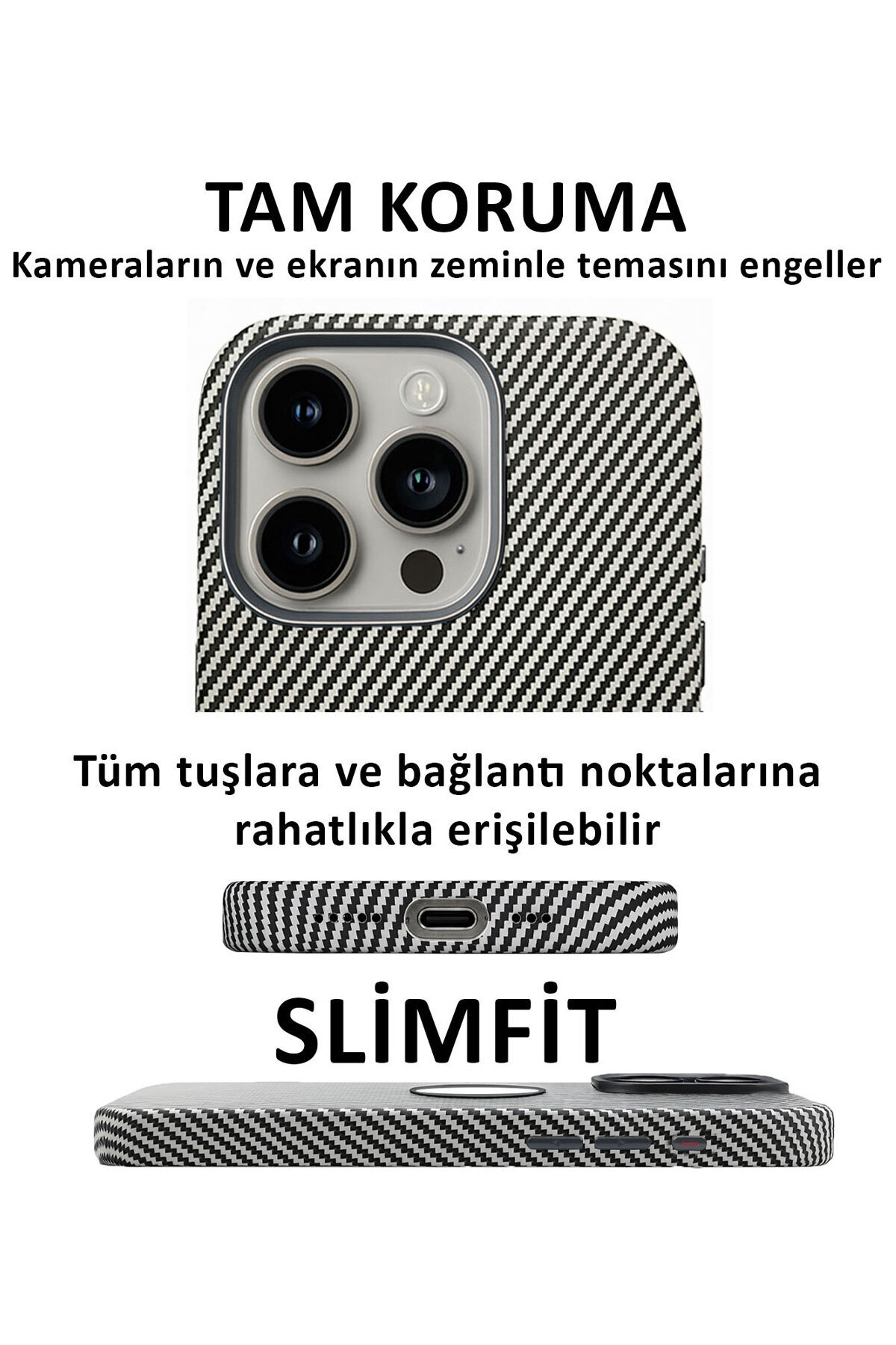 Apple iPhone 16 Pro Max Kılıf Magsafe Wireless Şarj Özellikli Karbonfiber Desenli Kapak Apple iPhone 16 Pro Max Kılıf Magsafe Wireless Şarj Özellikli Karbonfiber Desenli Kapak 16PROMAXLOGOCRB تک سایز