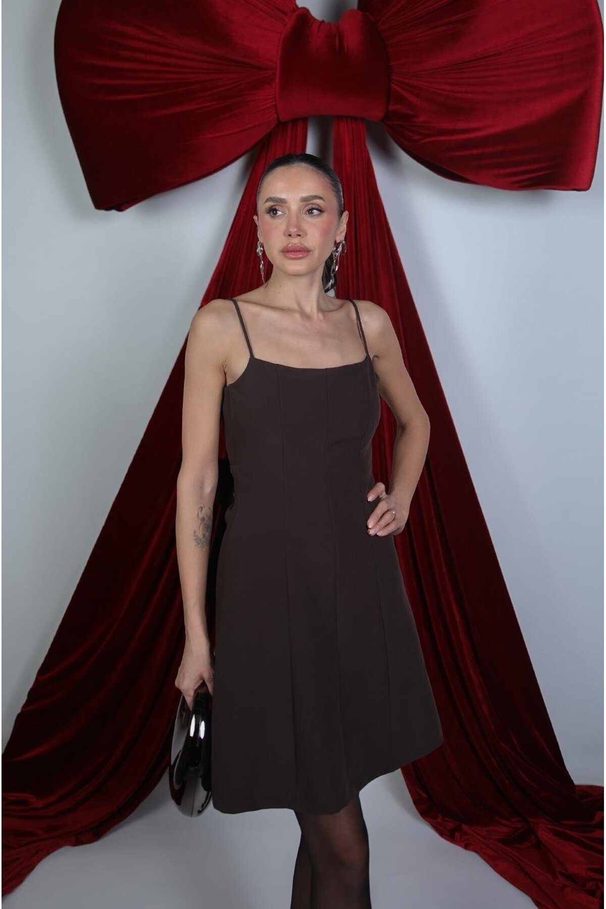 Kahverengi Arkası Fiyonk Detaylı Elbise Kahverengi Arkası Fiyonk Detaylı Elbise Helb1997 L