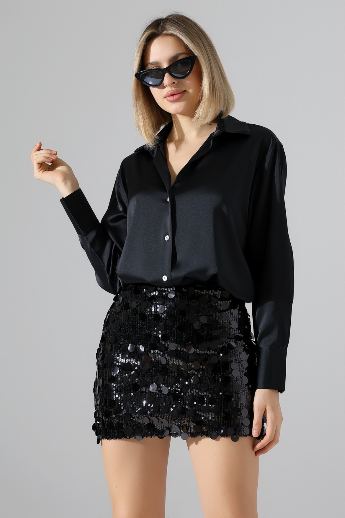 Kadın Pul Payetli Şort Mini Etek - Siyah Kadın Pul Payetli Şort Mini Etek - Siyah pullu2500 XL
