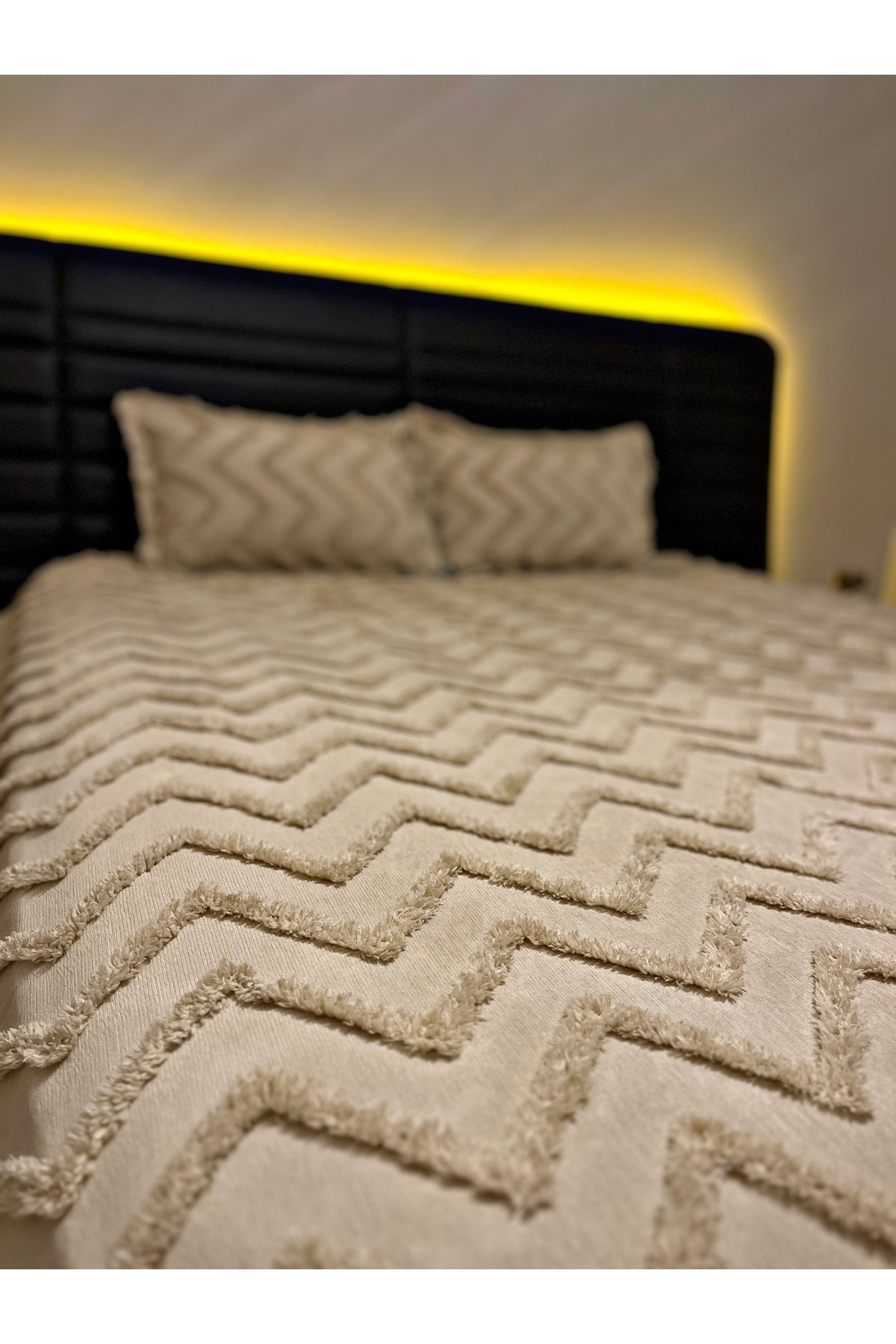 Premium Kalite Püsküllü Çift Kişilik Yatak Örtüsü 250x250 2 Yastık Kılıfı Bej Premium Kalite Püsküllü Çift Kişilik Yatak Örtüsü 250x250 2 Yastık Kılıfı Bej ZİKZAK تک سایز