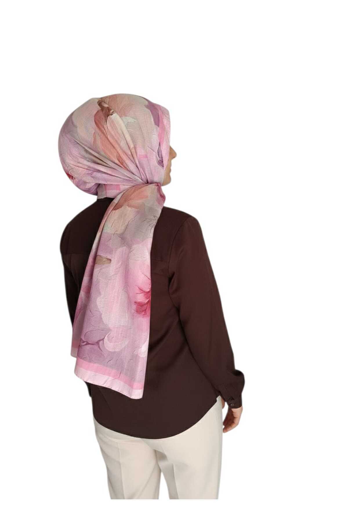 Bambu Crush Yaprak Desenli Pudra Renkli Şal Bambu Crush Yaprak Desenli Pudra Renkli Şal ABC060 تک سایز