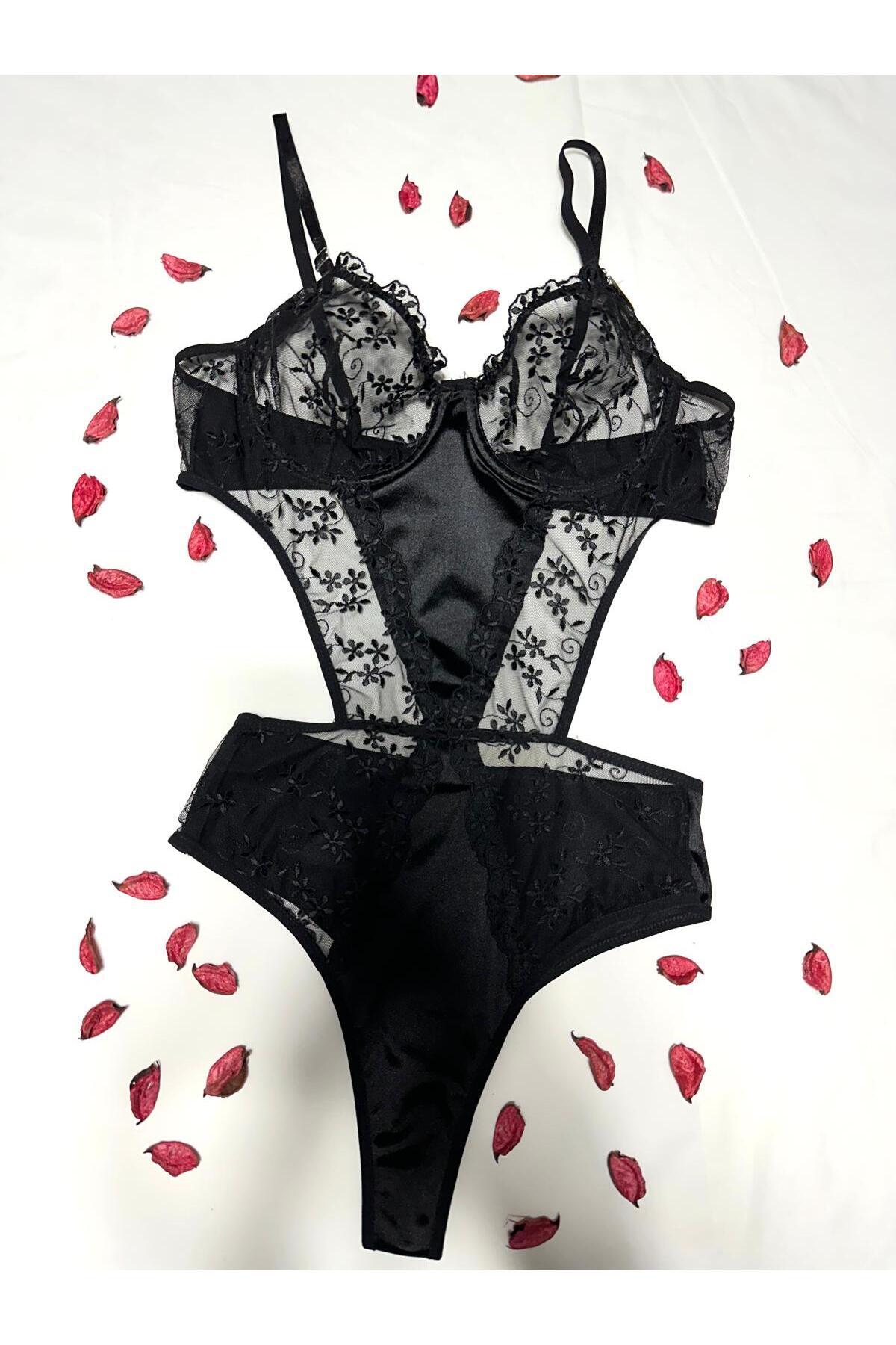 Jartiyer Detaylı Dantelli Bodysuit Fantezi (Bordo) Jartiyer Detaylı Dantelli Bodysuit Fantezi (Bordo) 8405 XL