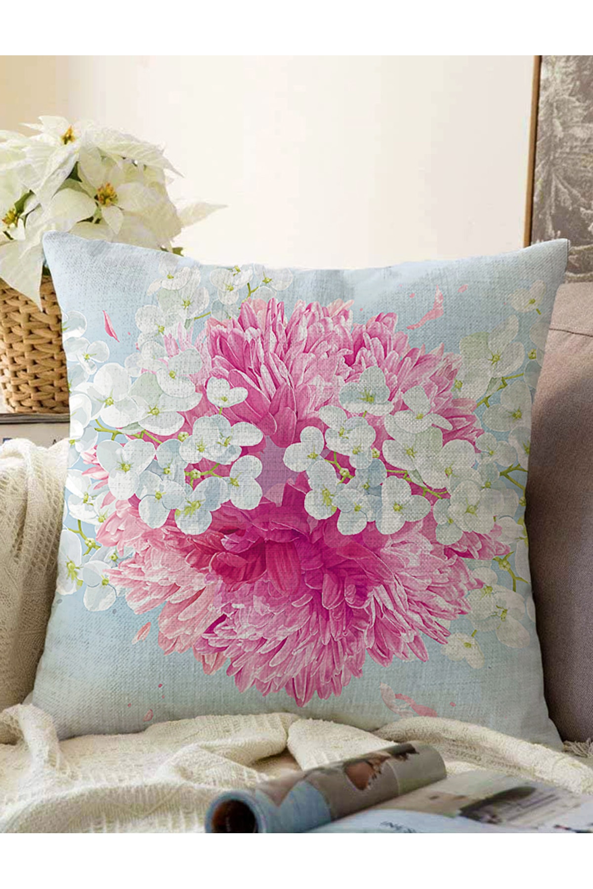 Çift Taraflı Dijital Baskı Kırlent Kılıfı Çiçek Bahçesi Çift Taraflı Dijital Baskı Kırlent Kılıfı Çiçek Bahçesi FLMT-NZ1238 43 x 43