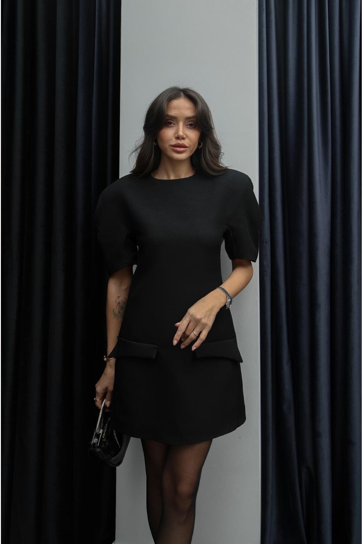 Siyah Madonna Kürk Yakalı Elbise Siyah Madonna Kürk Yakalı Elbise Helb2003 L