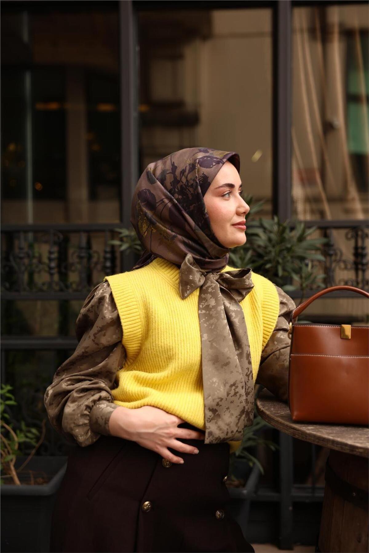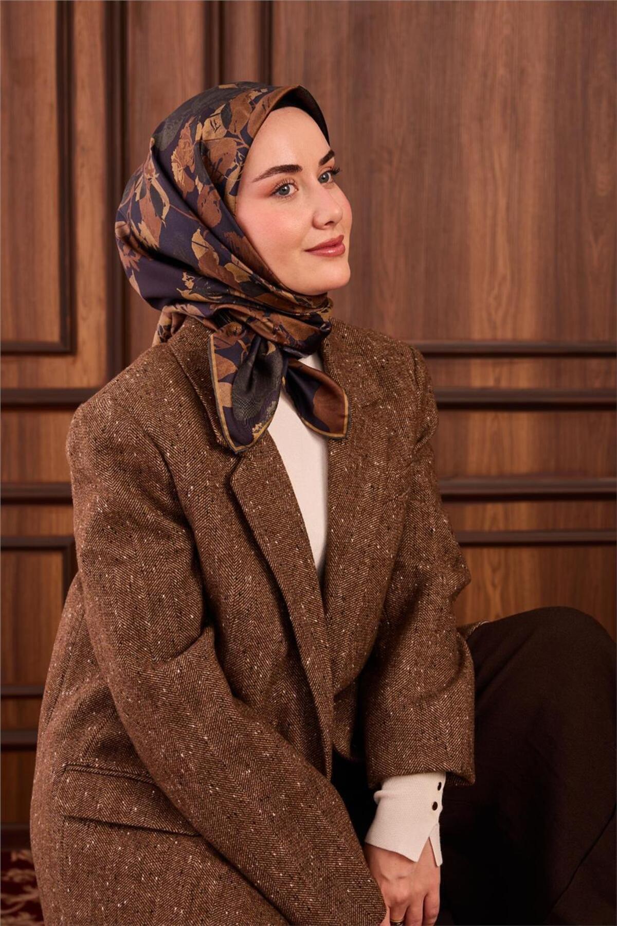 Twill İpek Eşarp Koyu Bordo-Vizon Çiçek Desenli Tok Formlu Kaymaz 90x90 Twill İpek Eşarp Koyu Bordo-Vizon Çiçek Desenli Tok Formlu Kaymaz 90x90 11497 تک سایز
