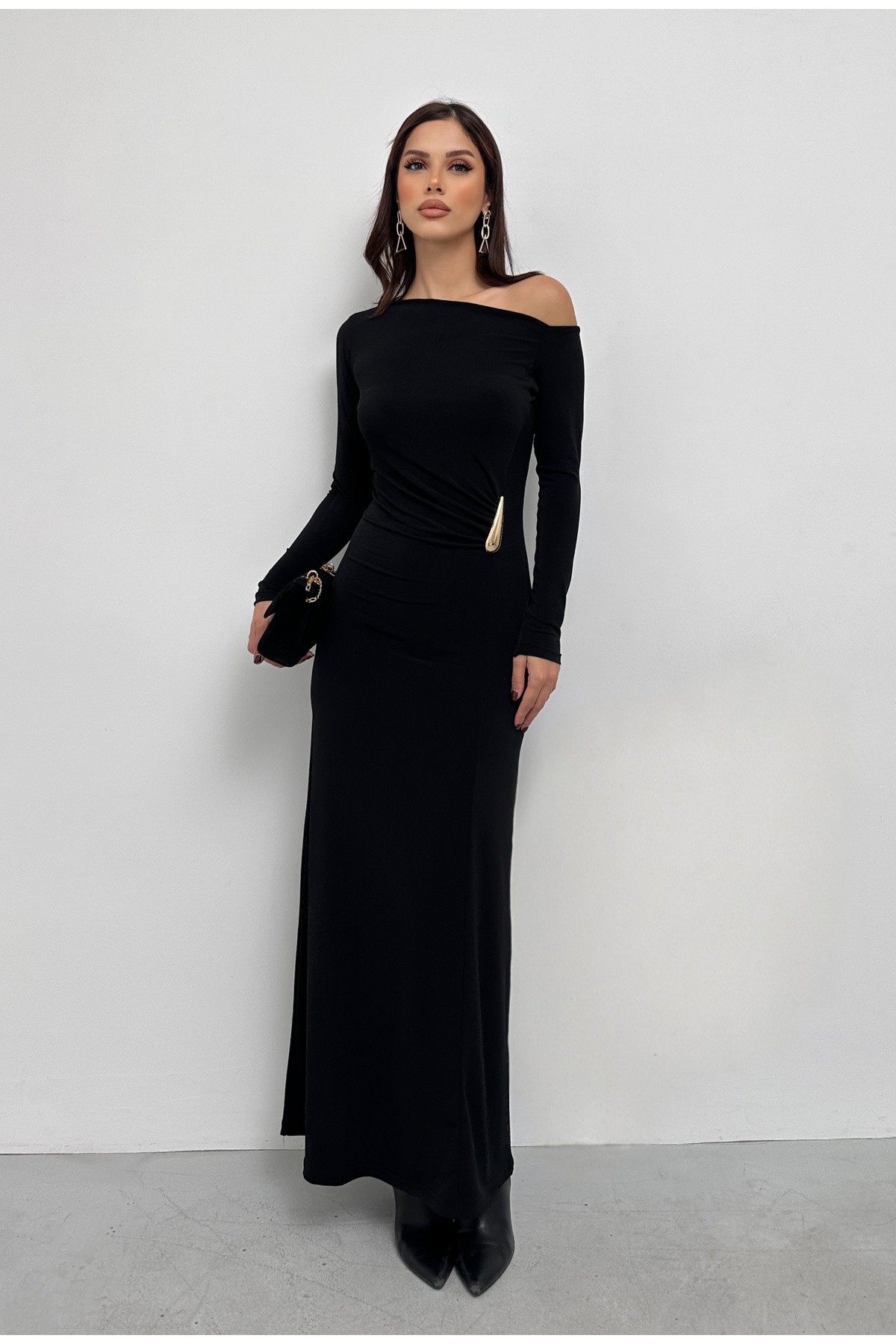İNCE TOKA DETAYLI ASİMETRİK YAKA UZUN KOL SANDY ELBİSE İNCE TOKA DETAYLI ASİMETRİK YAKA UZUN KOL SANDY ELBİSE NEWNOW0017 XL
