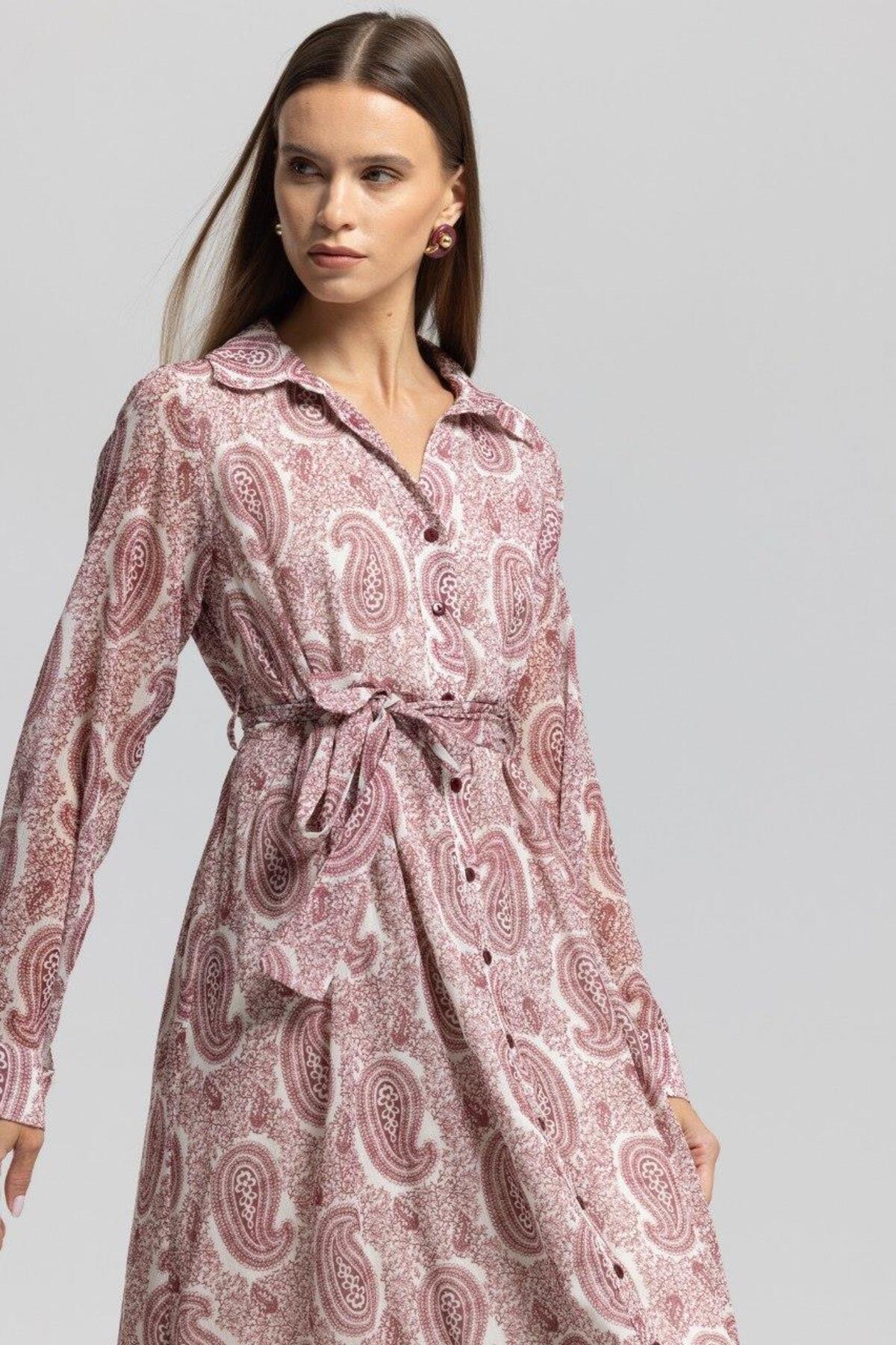Şal Desen Pembe Şifon Gömlek Elbise Şal Desen Pembe Şifon Gömlek Elbise EC10C440D L