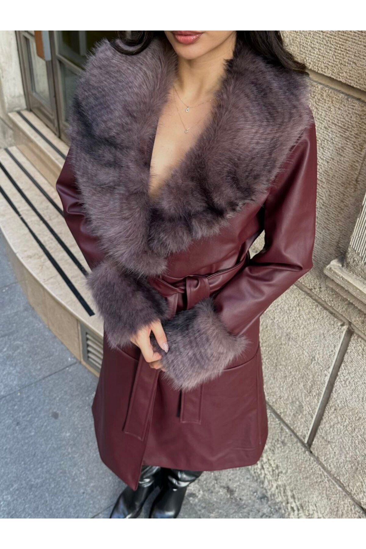 Premium Kalite Kürklü Deri Trençkot Pardesü Premium Kalite Kürklü Deri Trençkot Pardesü Vess.1000best L