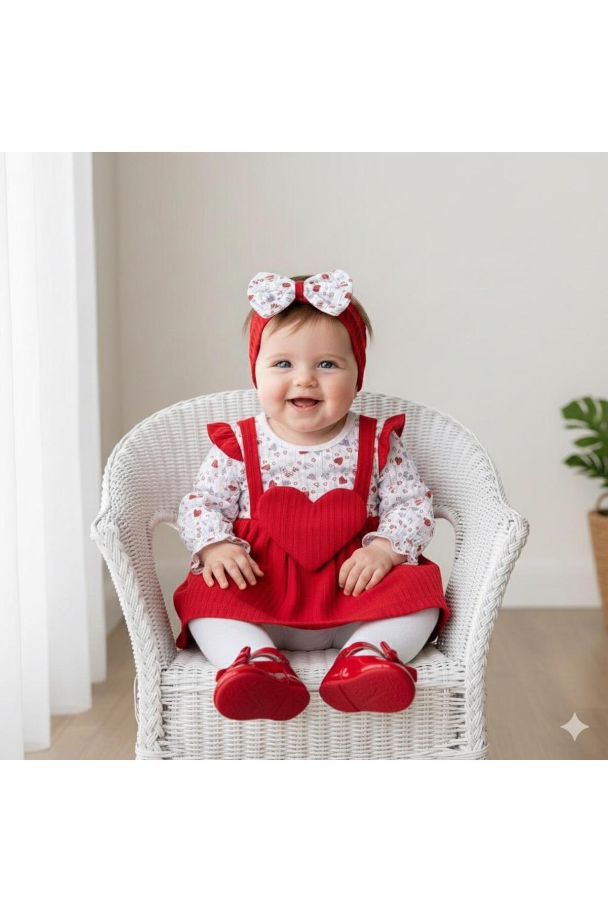 Yumuşak Pamuklu Çiçek Desenli Kalpli Kız Bebek Elbise Yumuşak Pamuklu Çiçek Desenli Kalpli Kız Bebek Elbise CGN967570 18-24 AY