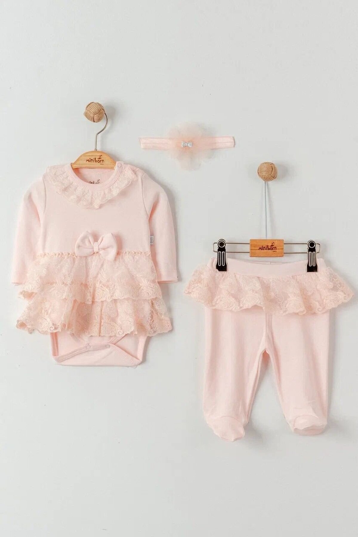 Pamuklu Dantel Detaylı 2li Kız Bebek Takım Pamuklu Dantel Detaylı 2li Kız Bebek Takım CGN223215 3-6 AY