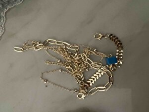 Mavi Boncuk Detaylı Altın Dörtlü Bleklik Mavi Boncuk Detaylı Altın Dörtlü Bleklik BL1445 تک سایز