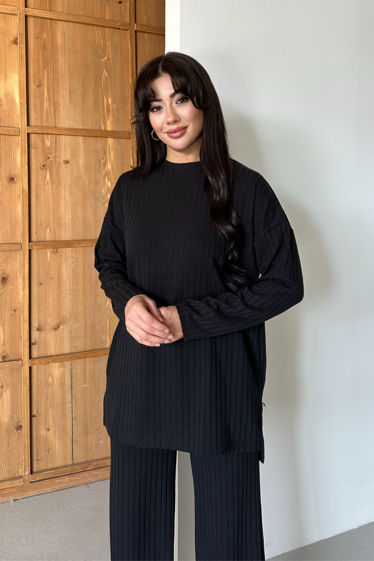 Kadın Triko Görünümlü Çizgili Bisiklet Yaka Tesettür Tunik Takım 1152 Kadın Triko Görünümlü Çizgili Bisiklet Yaka Tesettür Tunik Takım 1152 BK1152 2XL