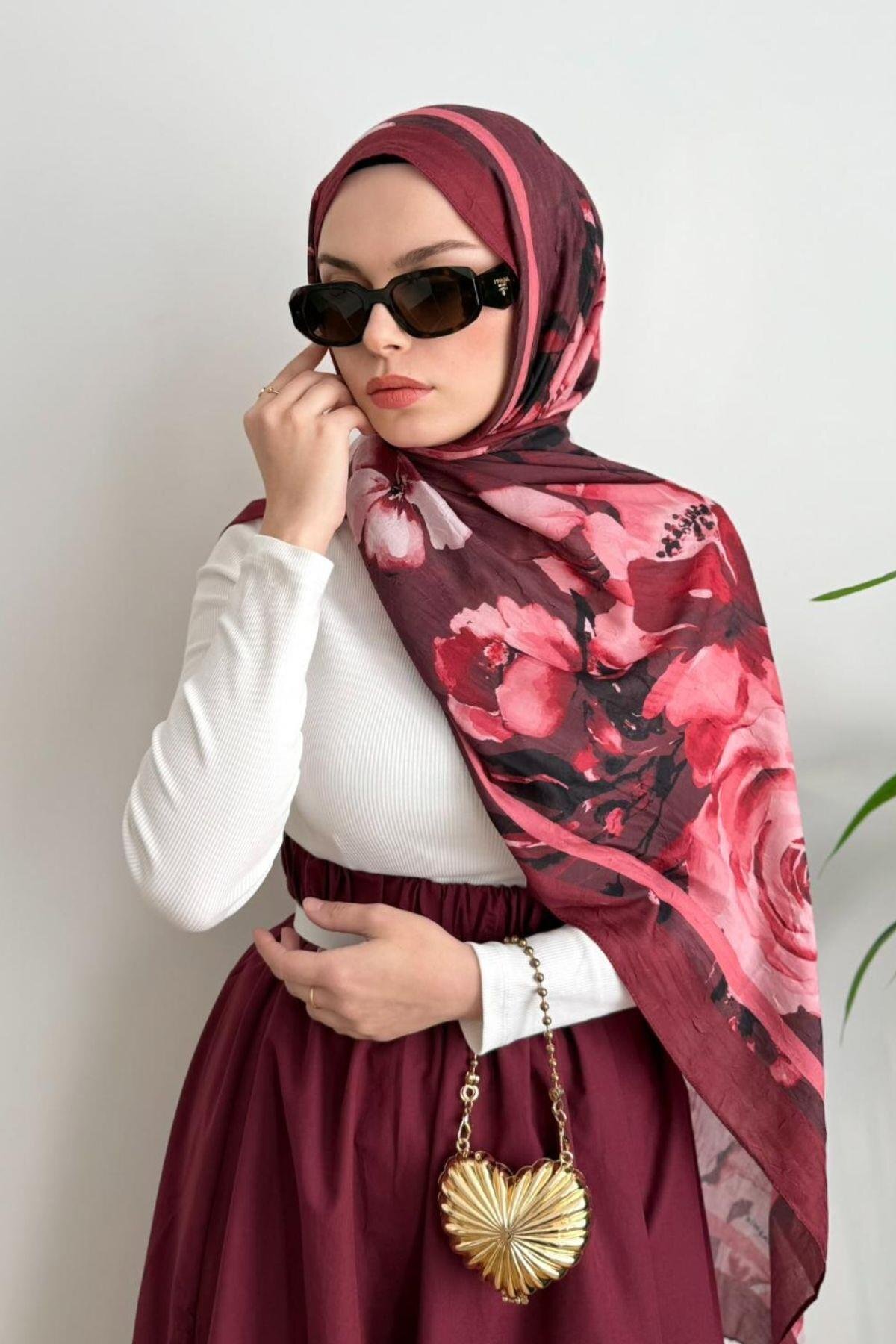 BORDO ÇİÇEKLİ PREMİUM ŞAL BORDO ÇİÇEKLİ PREMİUM ŞAL TYC8132238FA5CC715B1D1200 190 x 75