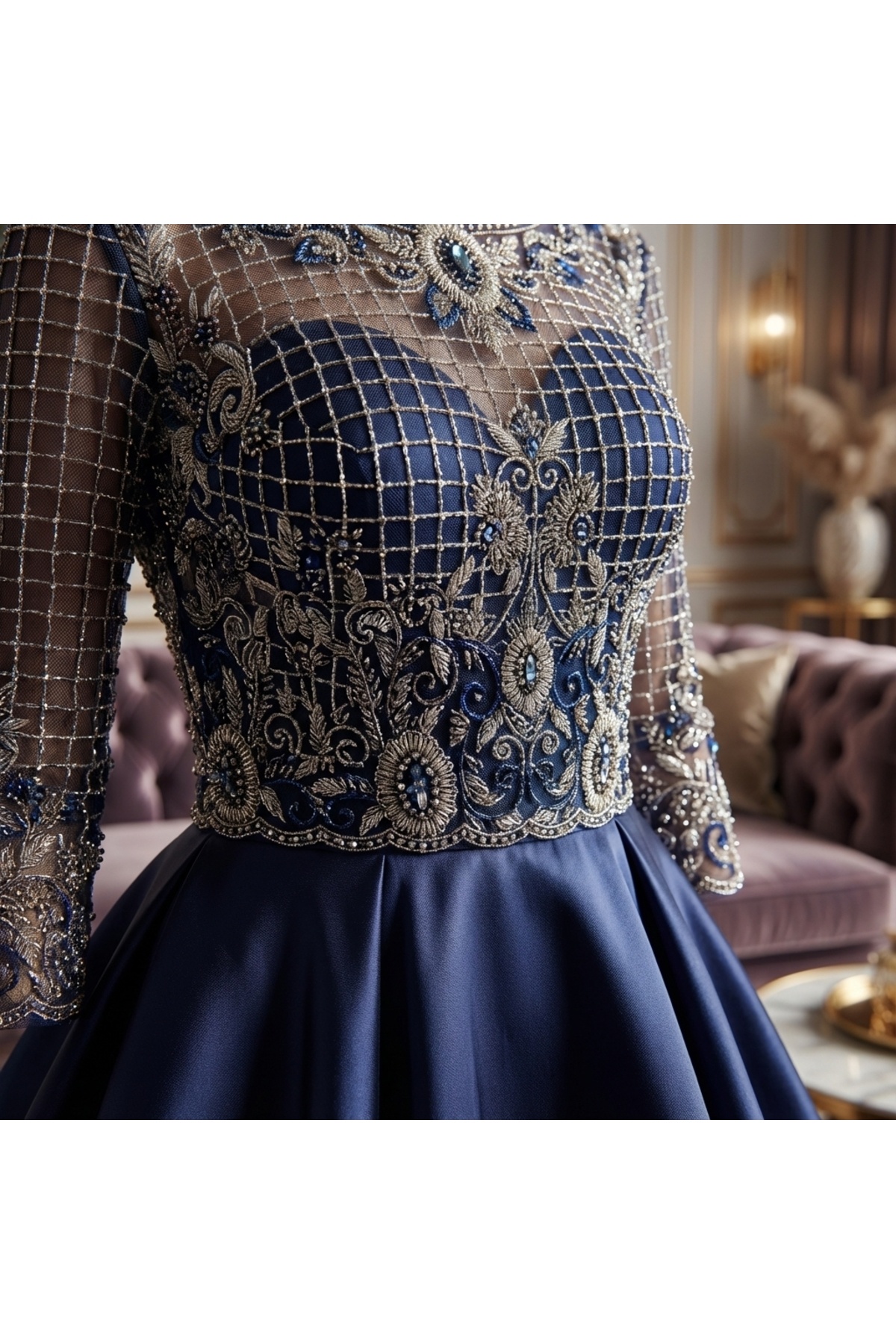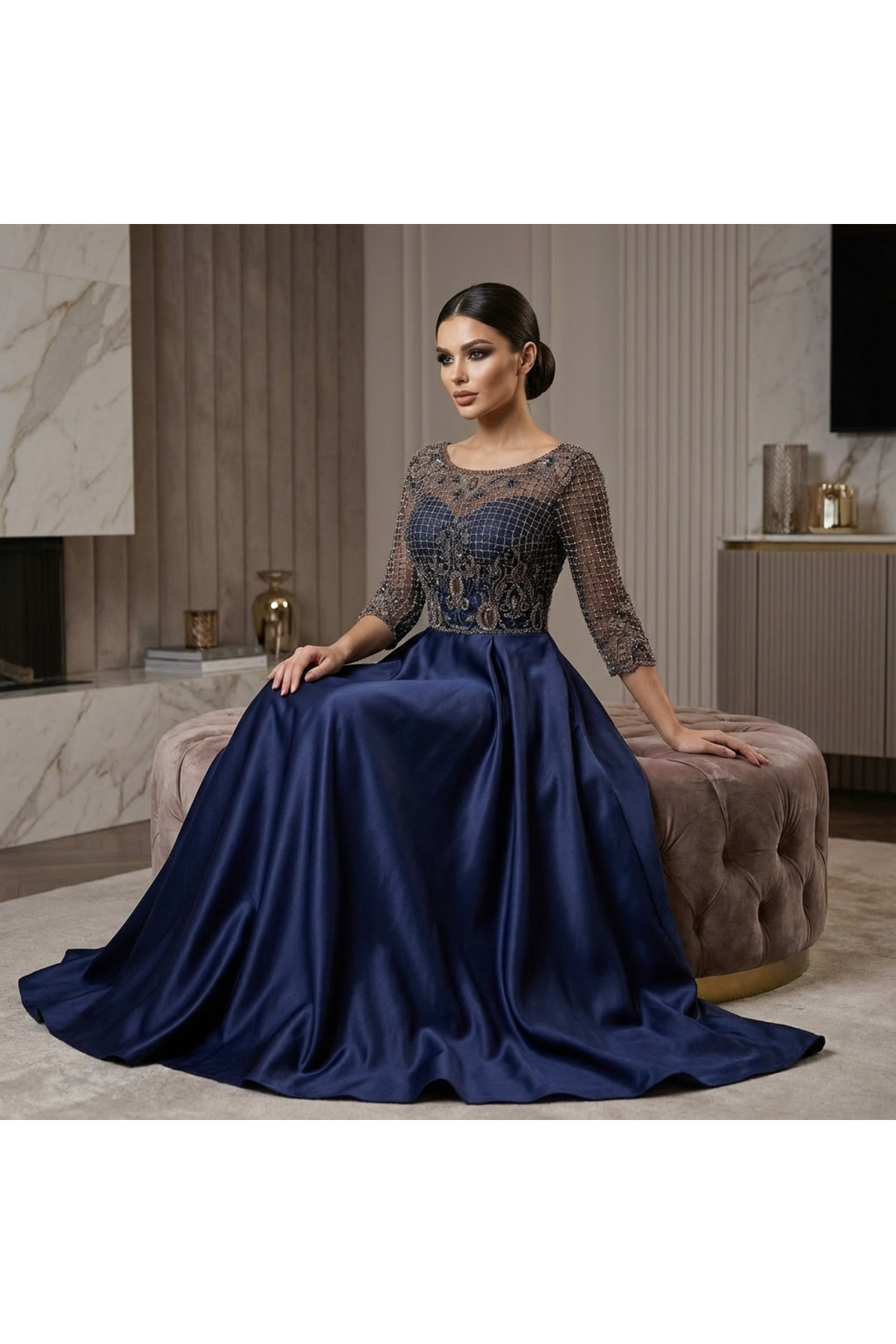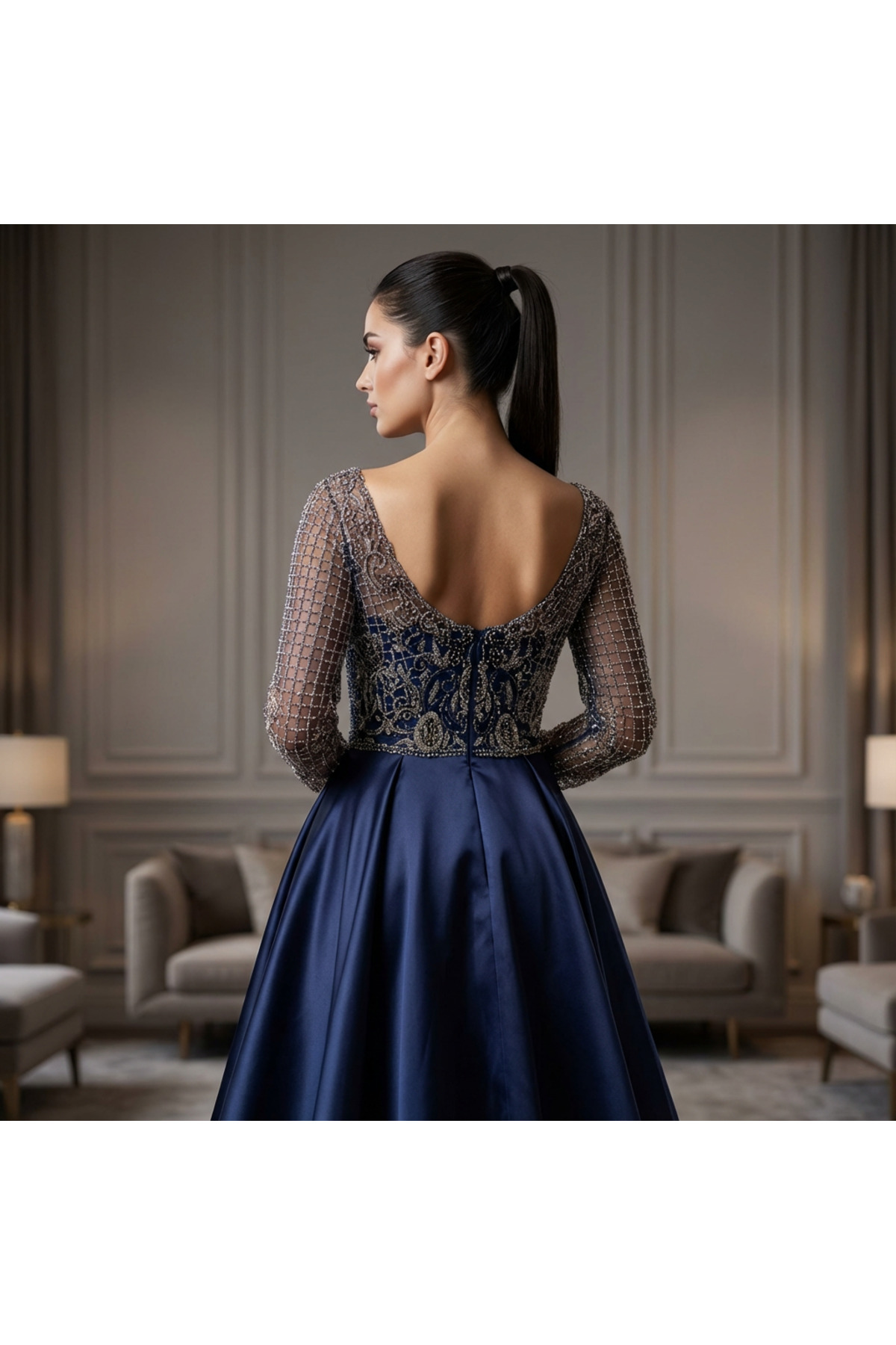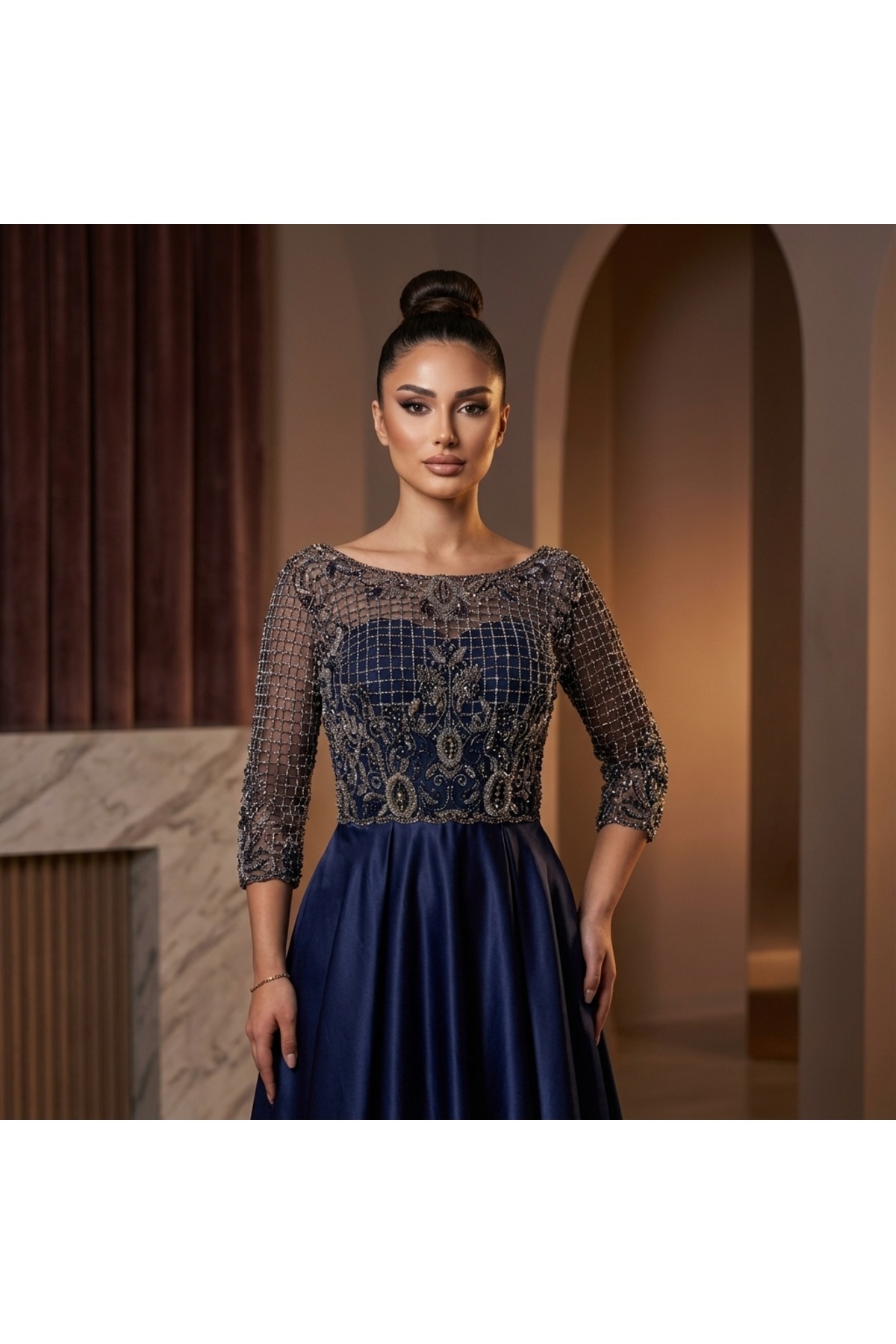 İşlemeli Tül Üstlü, Saten Etekli Uzun Abiye Elbise – Lacivert İşlemeli Tül Üstlü, Saten Etekli Uzun Abiye Elbise – Lacivert vtnd03000003 38-40