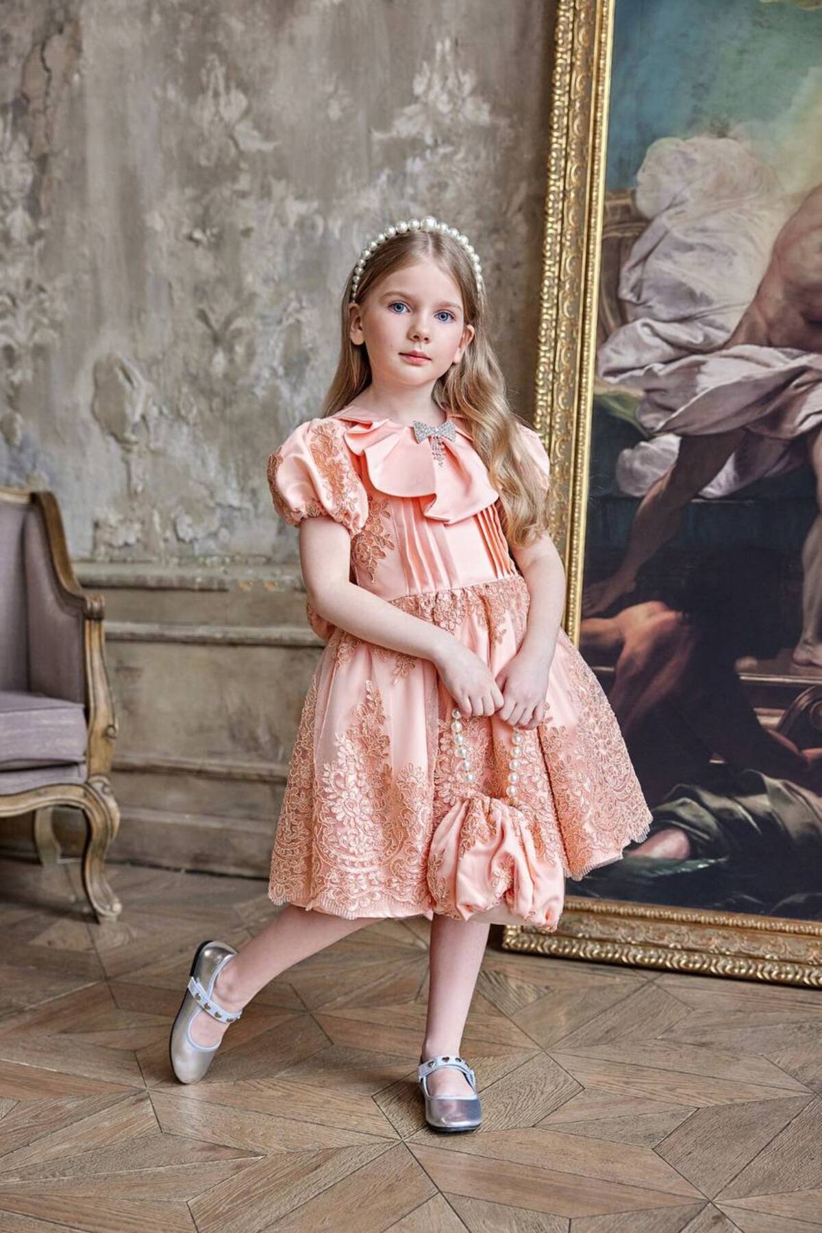 Bebe yakalı süper ve tül detaylı elbise Bebe yakalı süper ve tül detaylı elbise 24062 7-8 Yaş
